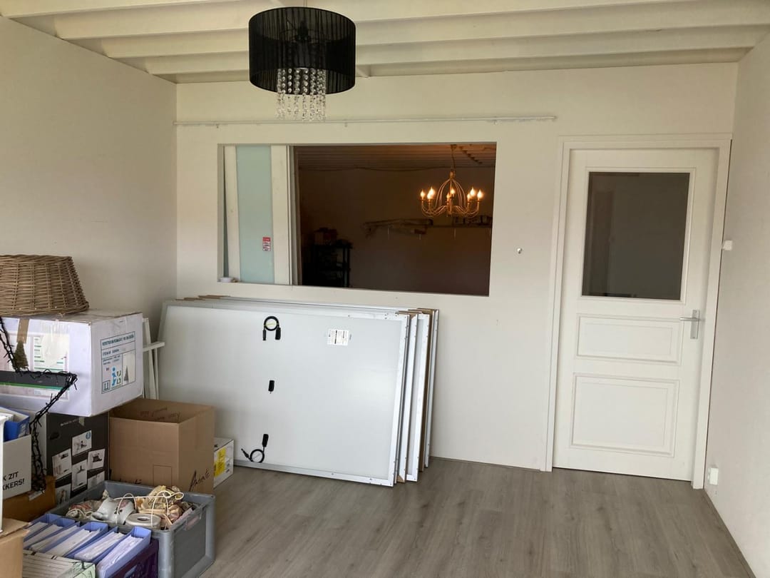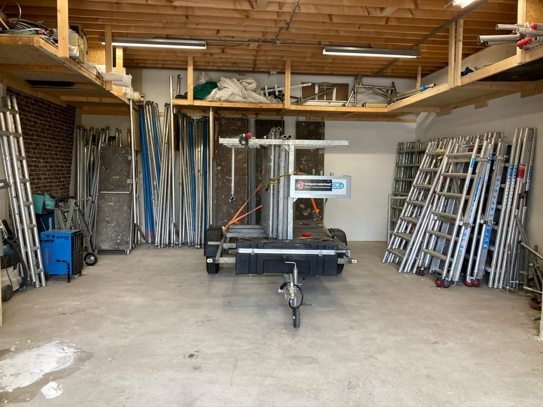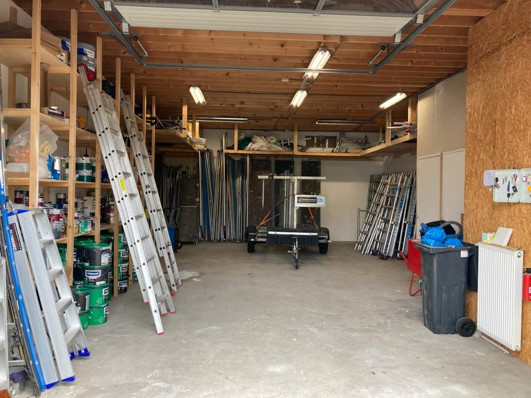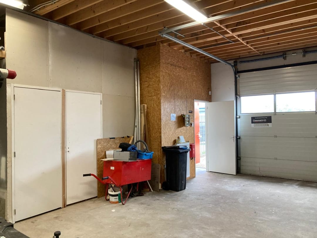 De overheaddeur is 2,97 m1 hoog en 3 m1 breed en wordt hand bediend.
