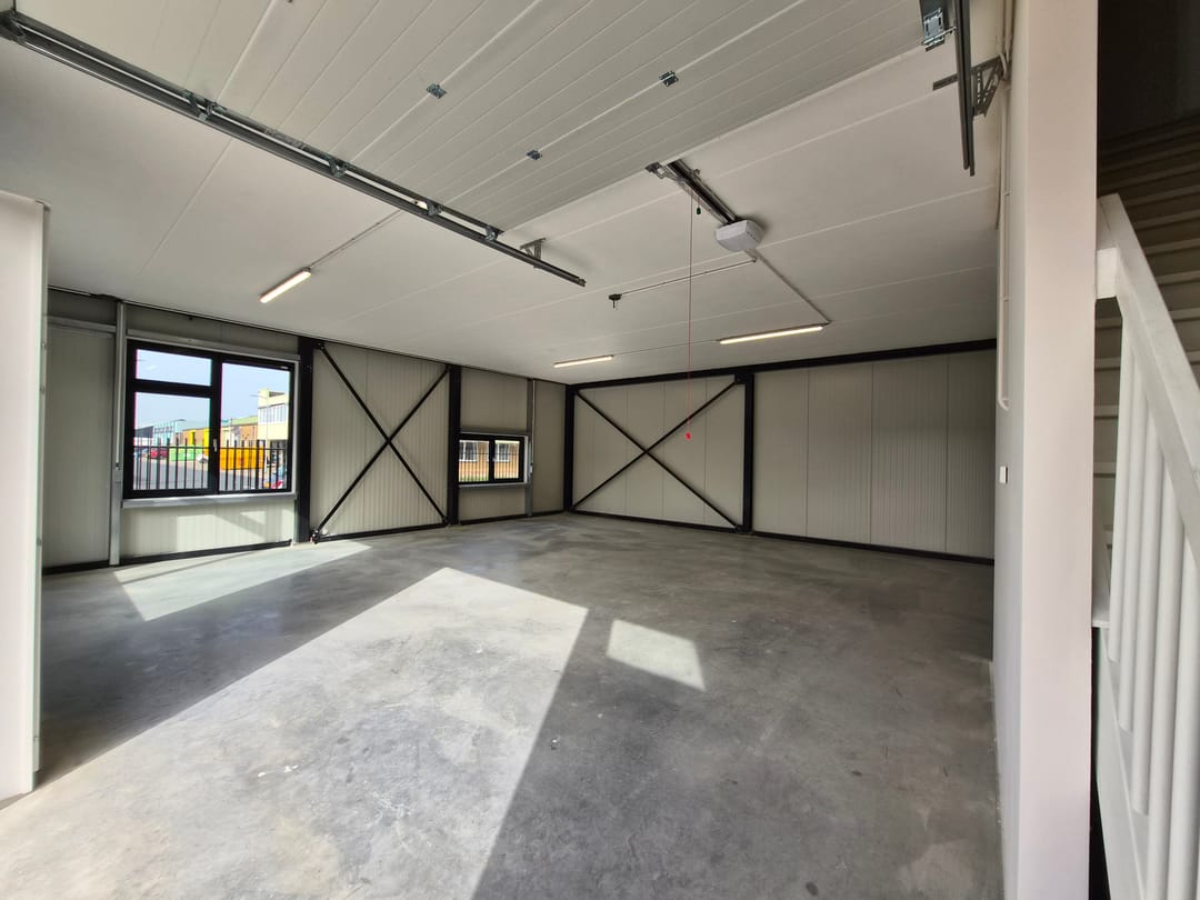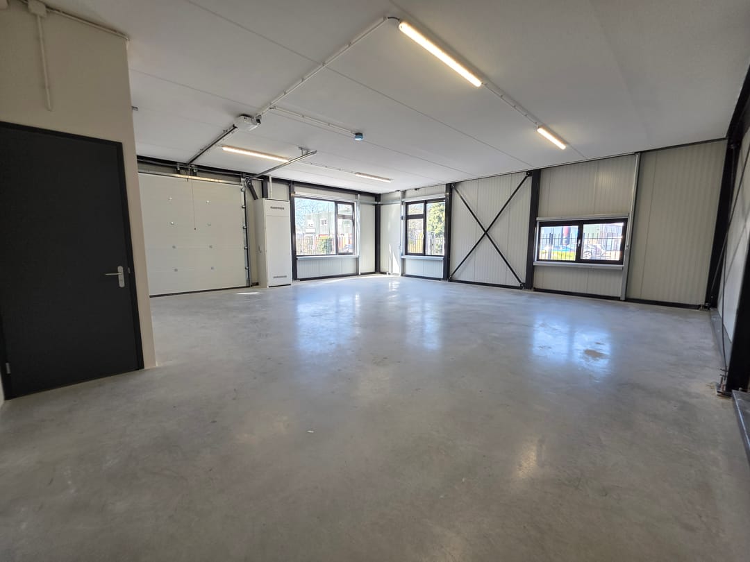 - Mechanische ventilatie, overheaddeuren, betonvloer en toilet