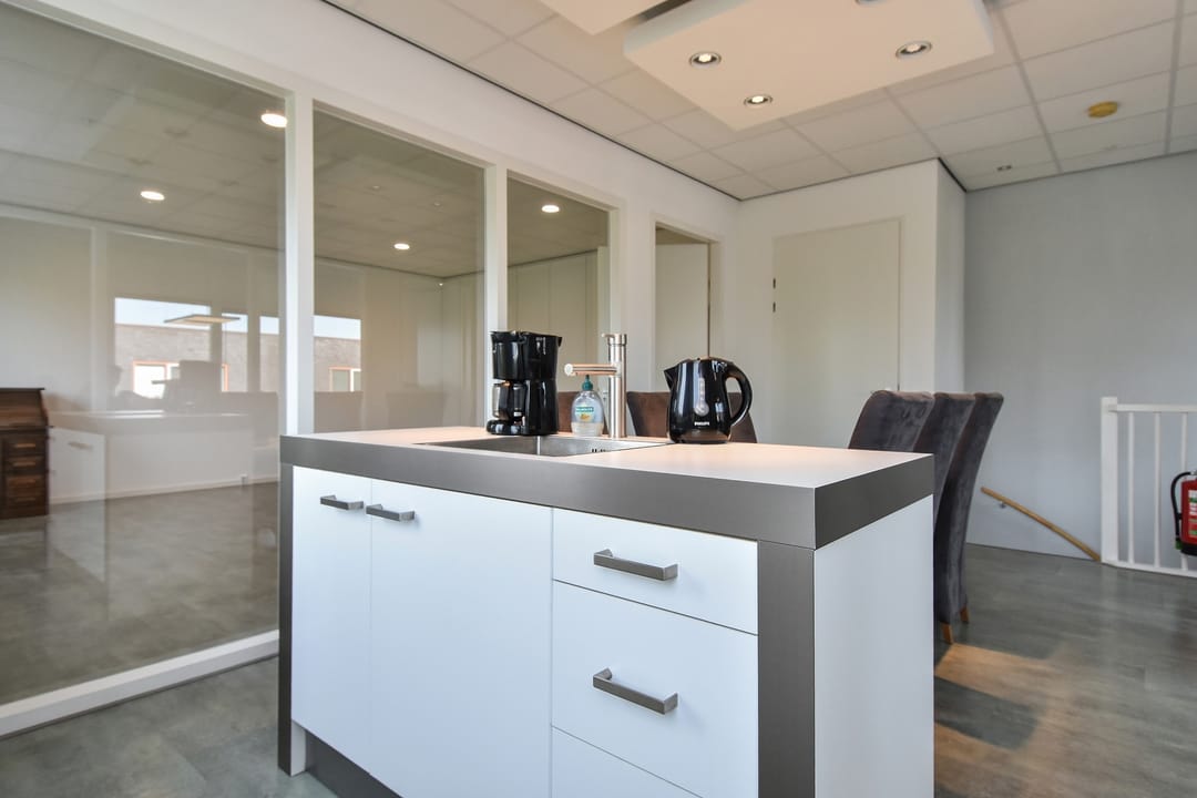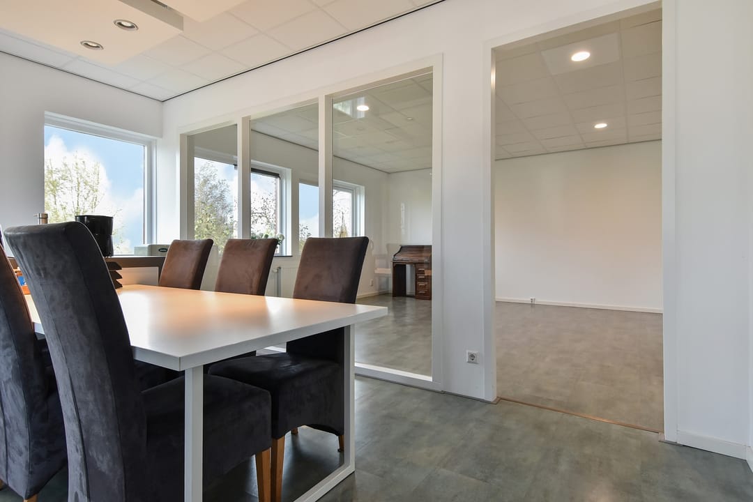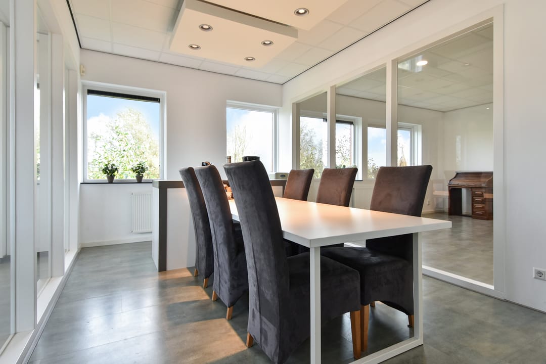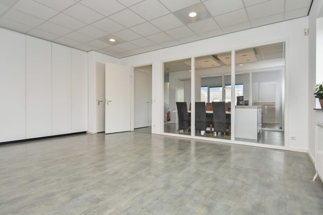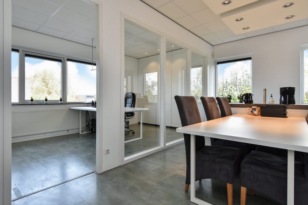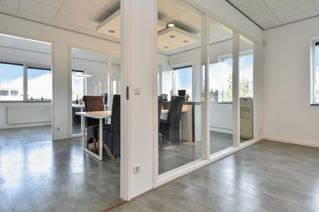 - kantoorindeling met glaswanden en systeemplafond;
