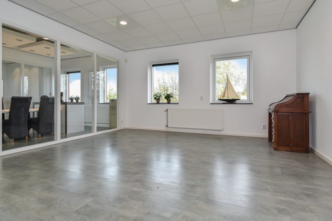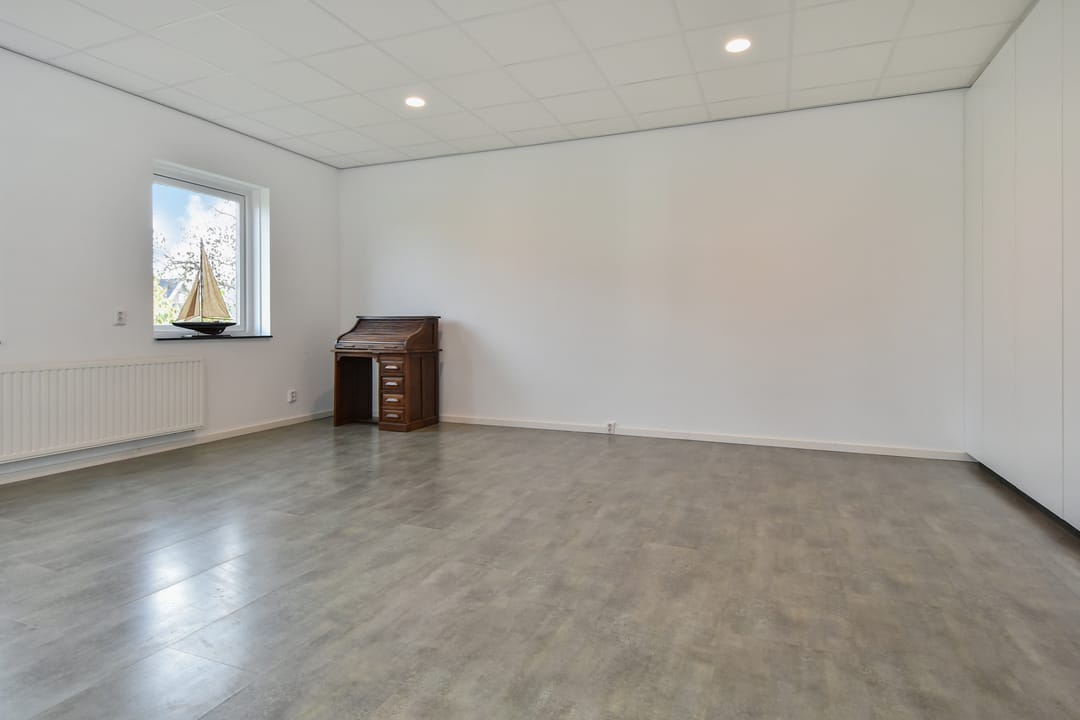 - Overheaddeuren, betonvloer, inbouwarmaturen en te openen ramen