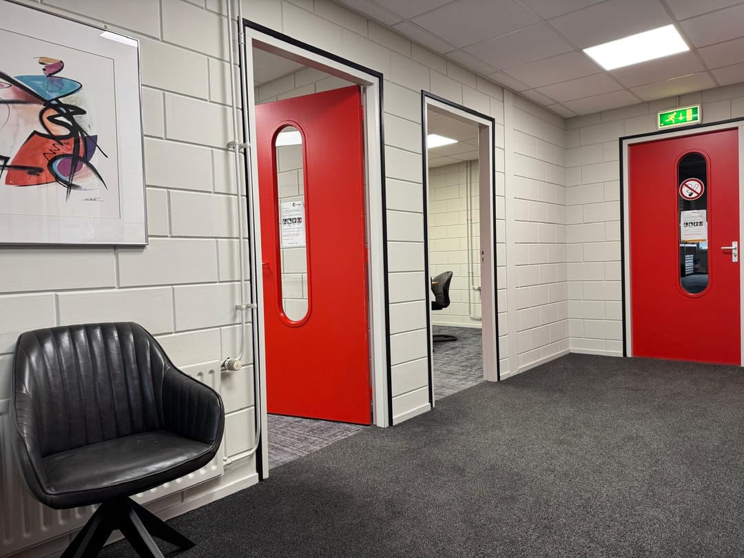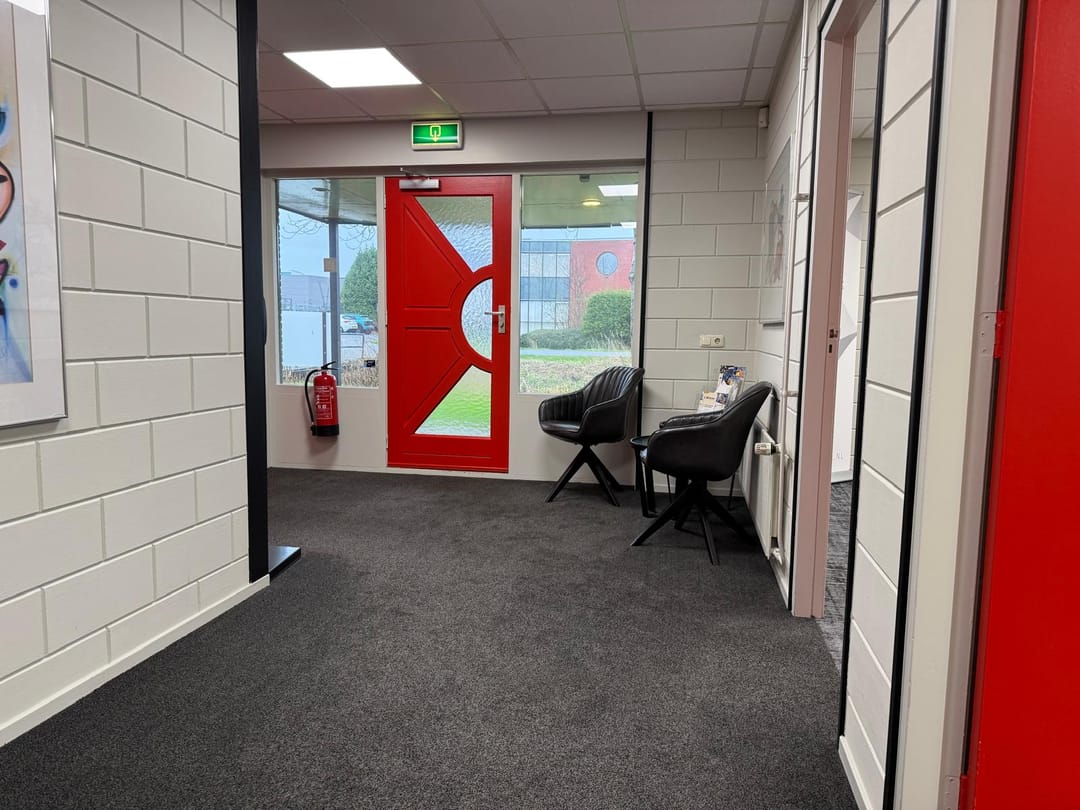 De representatieve entree aan de voorzijde geeft toegang tot het kantoorgedeelte, bestaande uit: