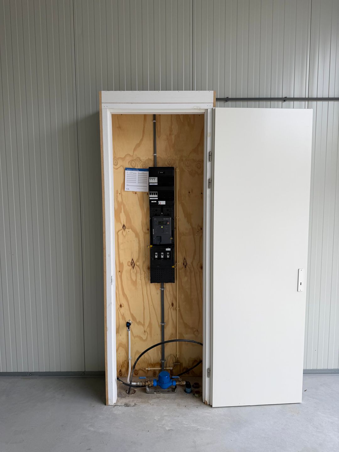 - Beschikt over een eigen meterkast met krachtstroom;