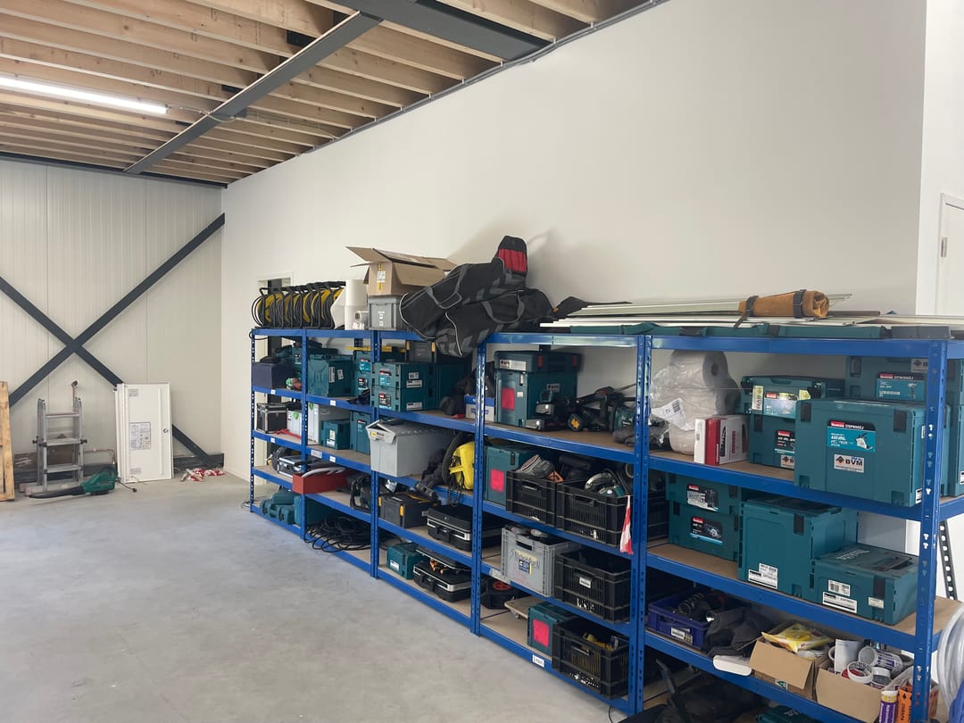 - Overheaddeuren, krachtstroom, betonvloer, heater, toilet, pantry, airconditioning, mechanische ventilatie, inbouwarmaturen en te openen ramen