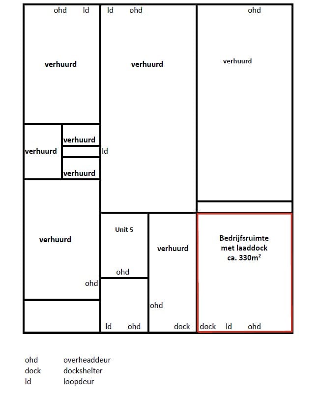bedrijfsruimte unit 5 : € 700- per maand, exclusief BTW en kosten van (nuts-)voorzieningen