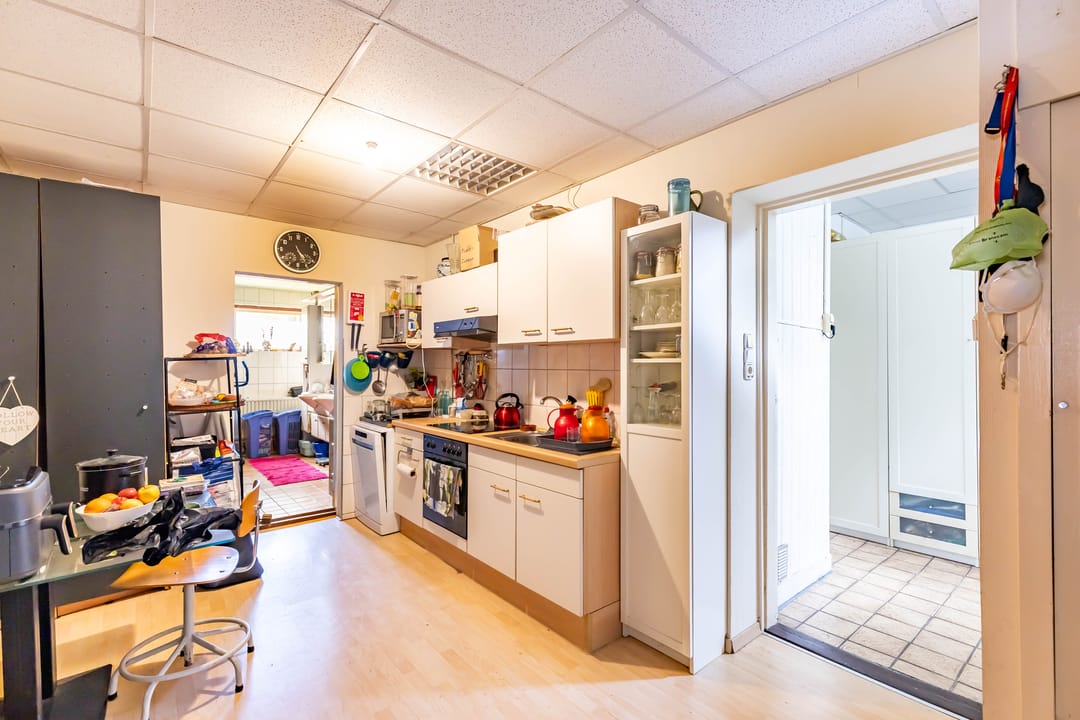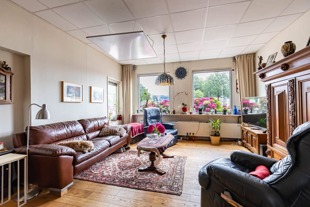 - Bedrijfswoning met winkelruimte/opslagruimte totaal oppervlakte beg ca. 200 m². Indeling: hal, woonkamer, keuken, slaapkamer, badkamer en garage.