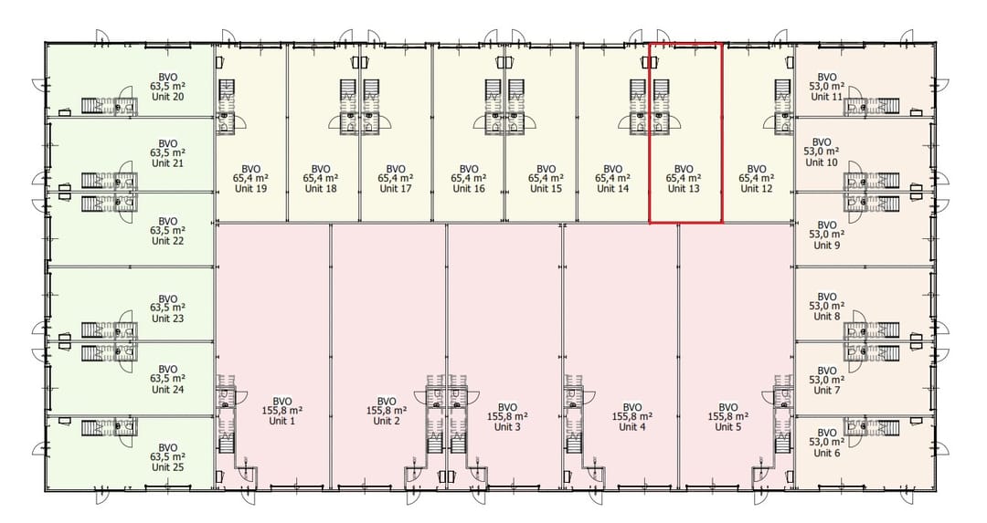 Businesspark Boxtel bestaat uit een hoogwaardig bedrijfsverzamelgebouw met 25 bedrijfsruimtes. De bedrijfsunit heeft een oppervlakte van circa 65 m² bedrijfsruimte op de begane grond en circa 65 m² bedrijfsruimte op de verdieping en beschikt over 3 eigen parkeerplaatsen. De bedrijfsruimtes is voorzien van een trap richting de verdiepingsvloer. De hoogte van de verdiepingsvloer is circa 4 meter. De unit is toegankelijk via een loopdeur en/of een elektrische bedienbare overheaddeur en beschikt voor een toilet, verlichting en voldoende stroompunten.