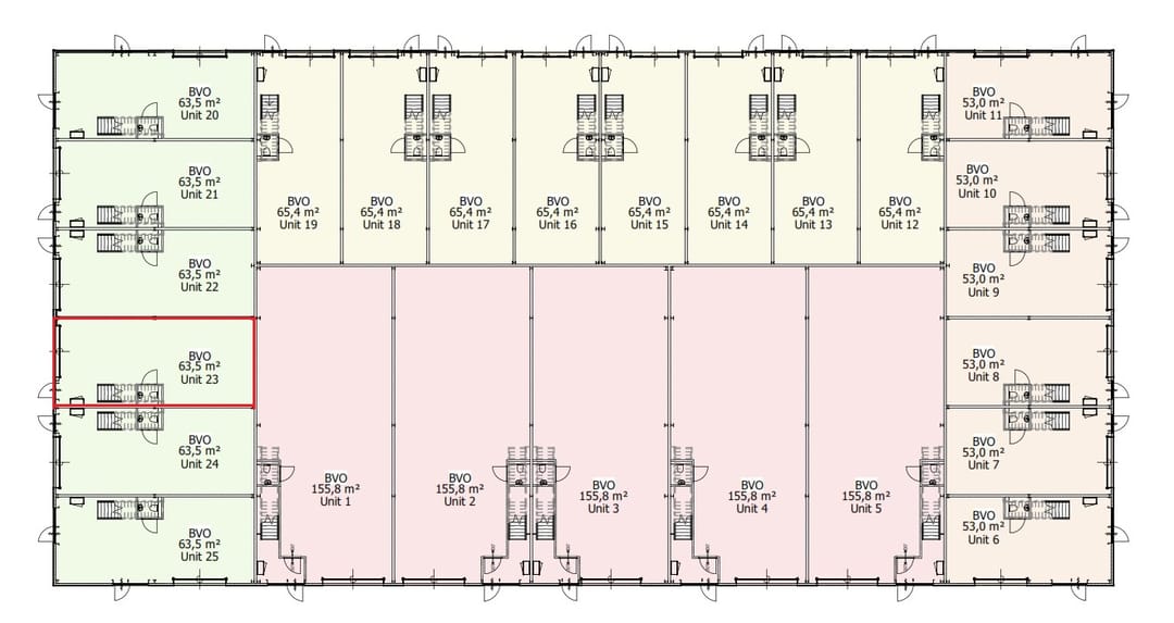 Businesspark Boxtel bestaat uit een hoogwaardig bedrijfsverzamelgebouw met 25 bedrijfsruimtes. Betreffende bedrijfsunit heeft een oppervlakte van circa 63,5 m² bedrijfsruimte op de begane grond en circa 63,5 m² bedrijfsruimte op de verdieping en beschikt over 2 eigen parkeerplaatsen. De bedrijfsruimtes is voorzien van een trap richting de verdiepingsvloer. De hoogte van de verdiepingsvloer is circa 4 meter. De unit is toegankelijk via een loopdeur en/of een elektrische bedienbare overheaddeur.