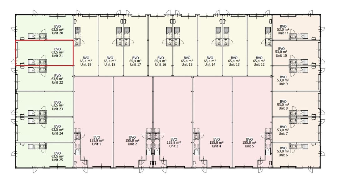 Businesspark Boxtel bestaat uit een hoogwaardig bedrijfsverzamelgebouw met 25 bedrijfsruimtes. Betreffende bedrijfsunit heeft een oppervlakte van circa 63,5 m² bedrijfsruimte op de begane grond en circa 63,5 m² bedrijfsruimte op de verdieping en beschikt over 3 eigen parkeerplaatsen. De bedrijfsruimtes is voorzien van een trap richting de verdiepingsvloer. De hoogte van de verdiepingsvloer is circa 4 meter. De unit is toegankelijk via een loopdeur en/of een elektrische bedienbare overheaddeur.