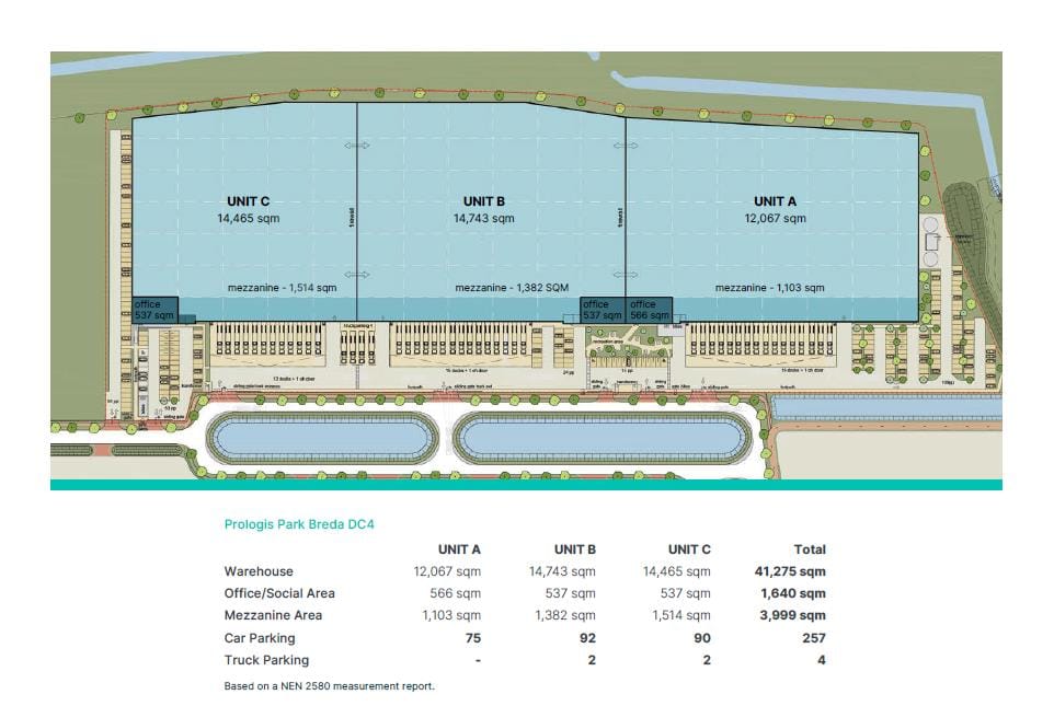 Prologis ontwikkelt op bedrijventerrein Treeport (BCT) een duurzaam en hoogwaardig warehouse, met een totale oppervlakte van ca. 46.914 m² verdeeld over 3 units, deelverhuur mogelijk van circa 13.736 m².