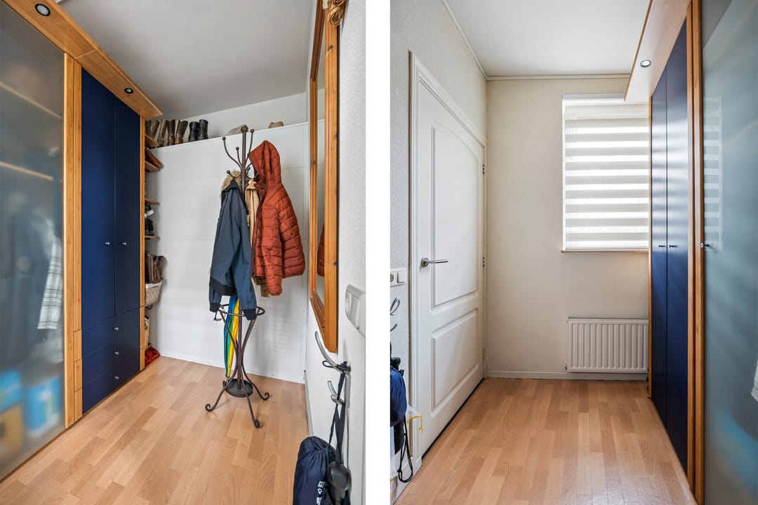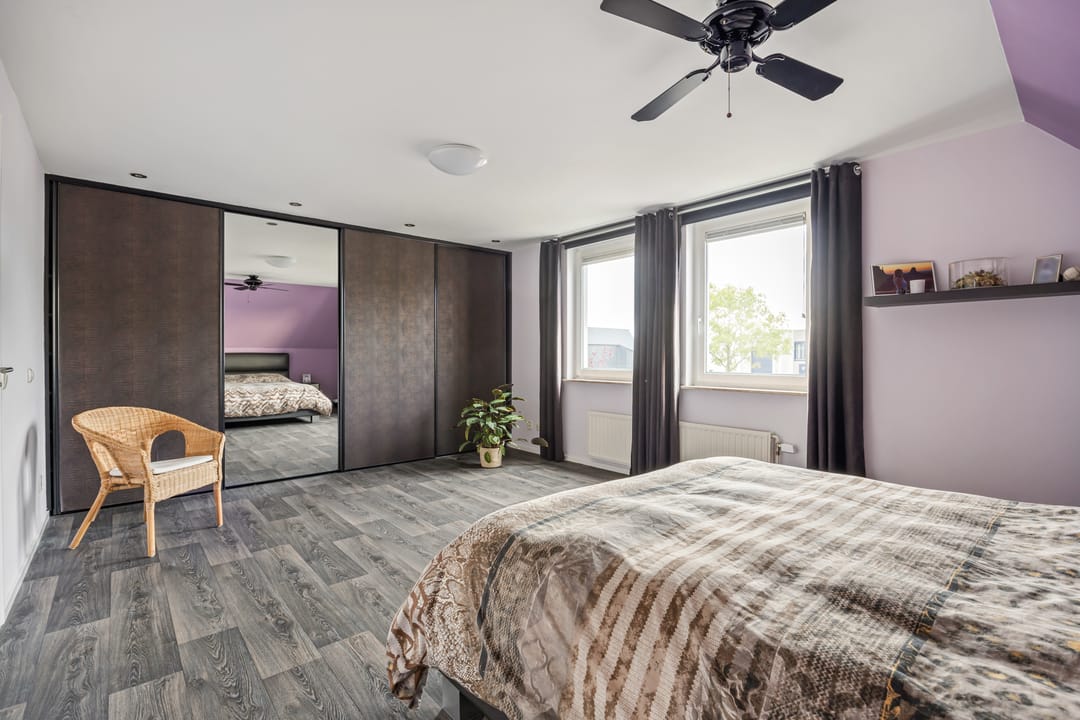 In de ouderslaapkamer zijn inbouwkasten gerealiseerd met een airco-unit.