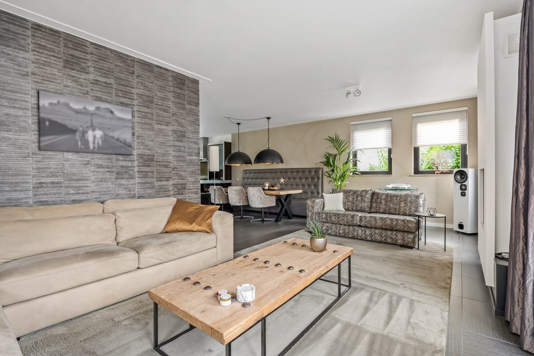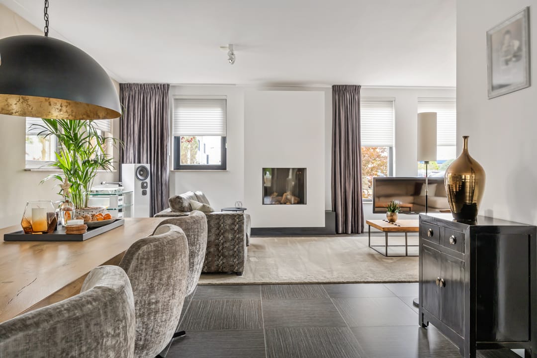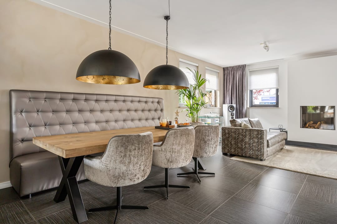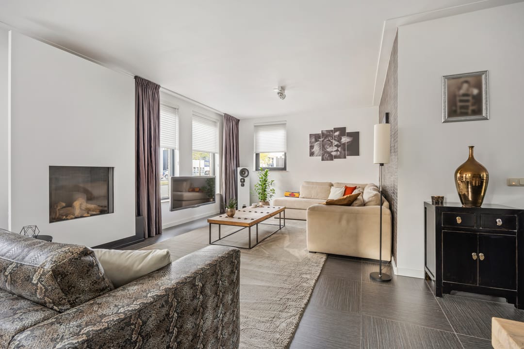 De begane grond is voorzien van een fraaie tegelvloer met vloerverwarming, stucwerk wand- en plafondafwerking. De woonkamer is voorzien van een fraaie gashaard.