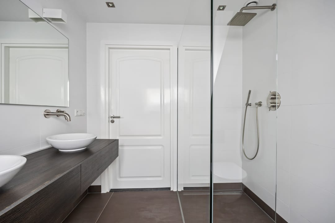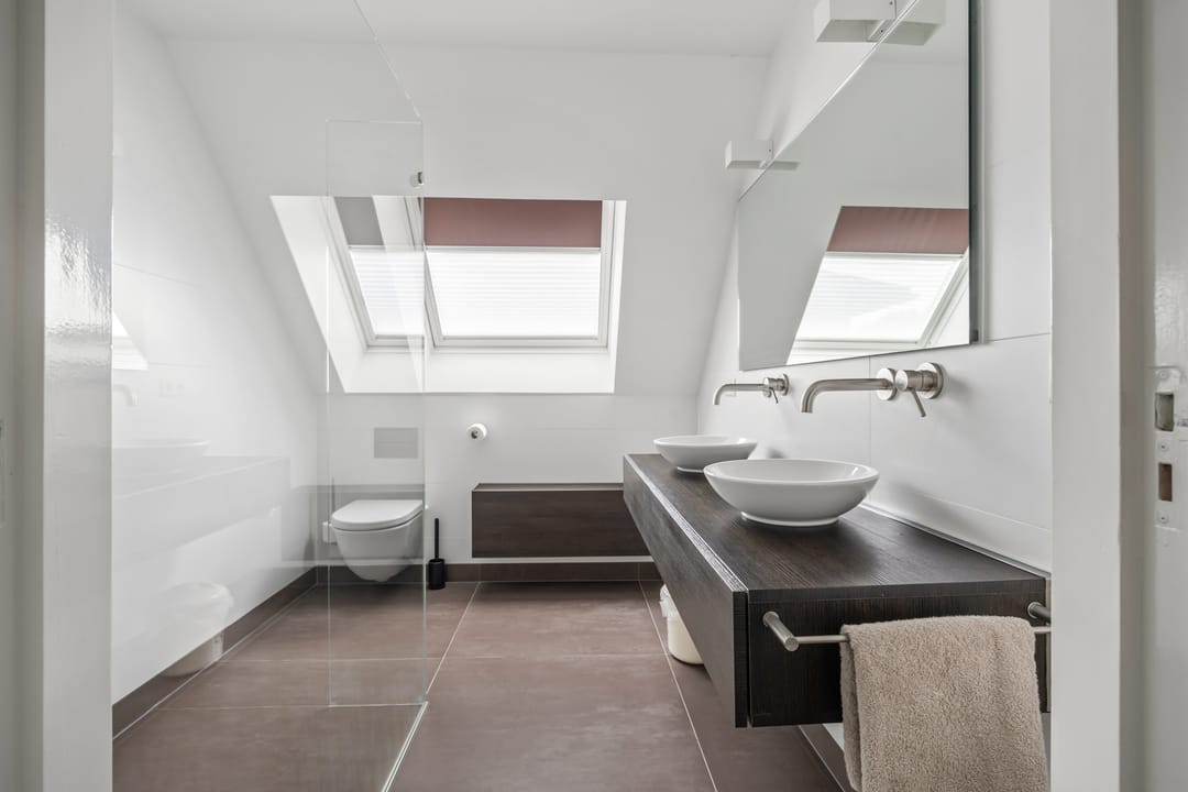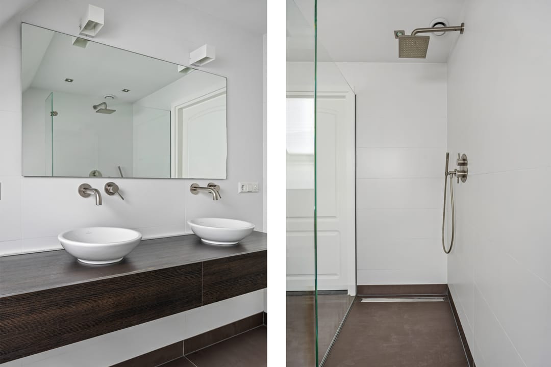De badkamer is voorzien van vloerverwarming, inloopdouche, toilet en wastafelmeubel.