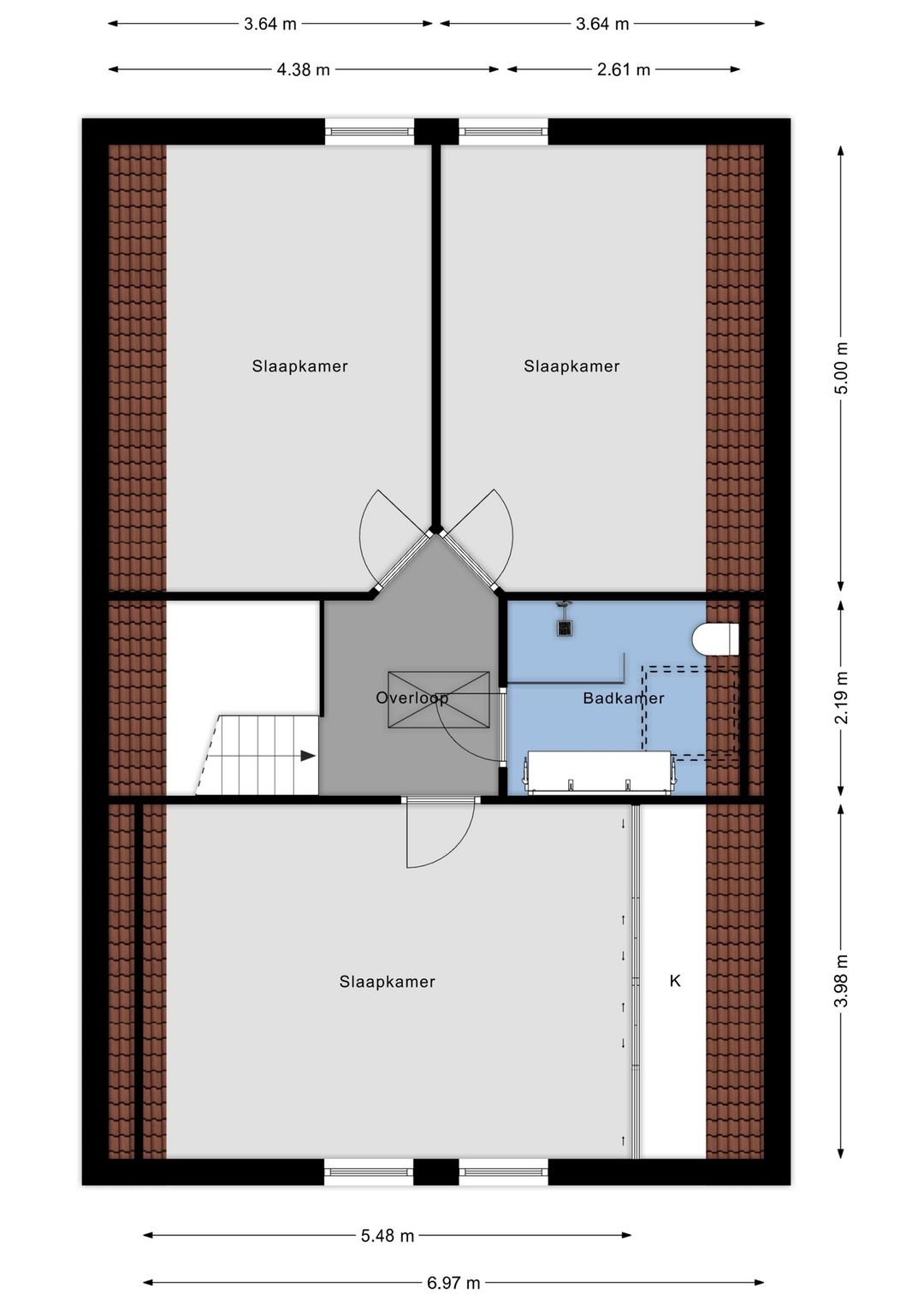 Tweede verdieping: ca. 23 m²