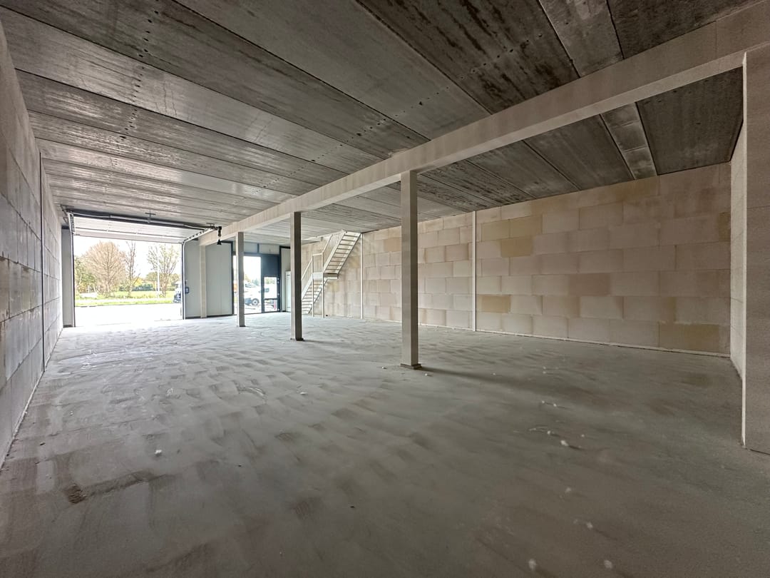 - een ruime bedrijfshal/showroom met elektrische overheaddeur