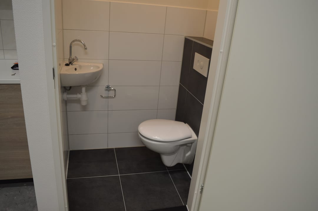 - Overheaddeuren, betonvloer, toilet, pantry en inbouwarmaturen