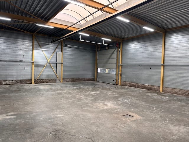 - Lichtstraten, overheaddeuren, krachtstroom, betonvloer, toilet en te openen ramen
