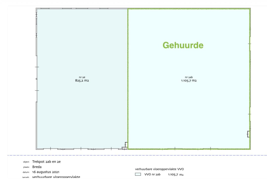 De totaal verhuurbare oppervlakte van de beschikbare ruimte bedraagt ca. 1.106 m². Er bevindt zich geen kantoorruimte in het pand, maar indien gewenst kan men dit inpassen.