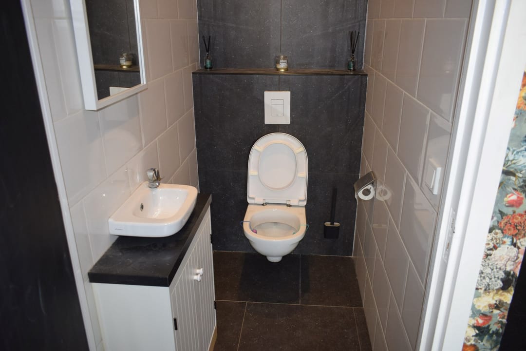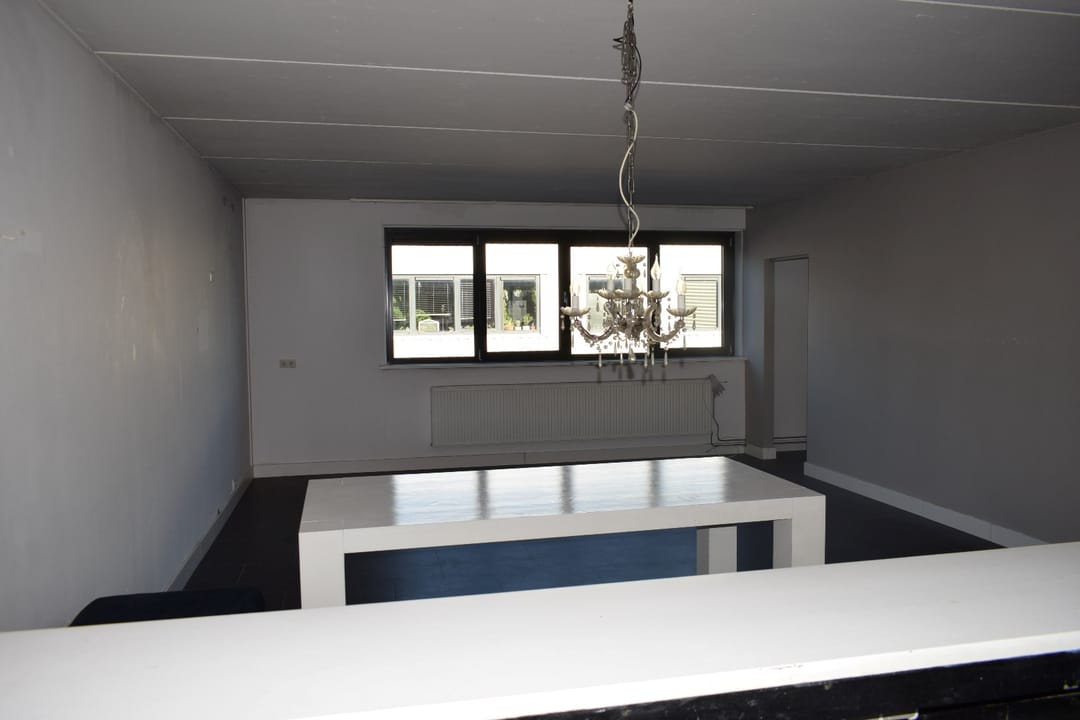 Op de verdieping twee ruimten geschikt voor o.a. als kantoor/showroom. Open keuken met apparatuur, badkamer met inloopdouche en wastafel. 2e toilet