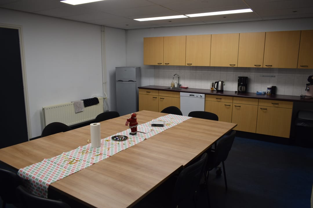 Kantoor: Entree met toegang tot de centrale ruimte van waaruit 5 kantoren bereikbaar zijn. Aansluitend secundaire ruimte met pantry en 2 toiletgroepen (dames- en heren). Aan de achterzijde de kantine met keuken , bergruimte en serverruimte.
