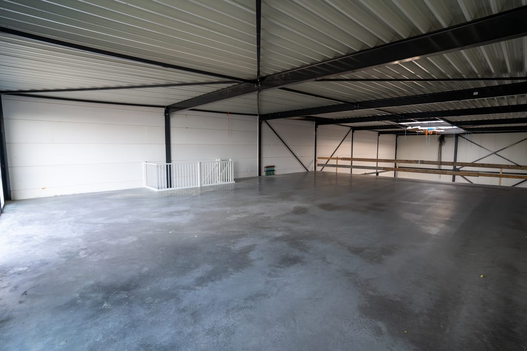 - Lichtstraten, overheaddeuren, krachtstroom, betonvloer, toilet, pantry, inbouwarmaturen en te openen ramen
