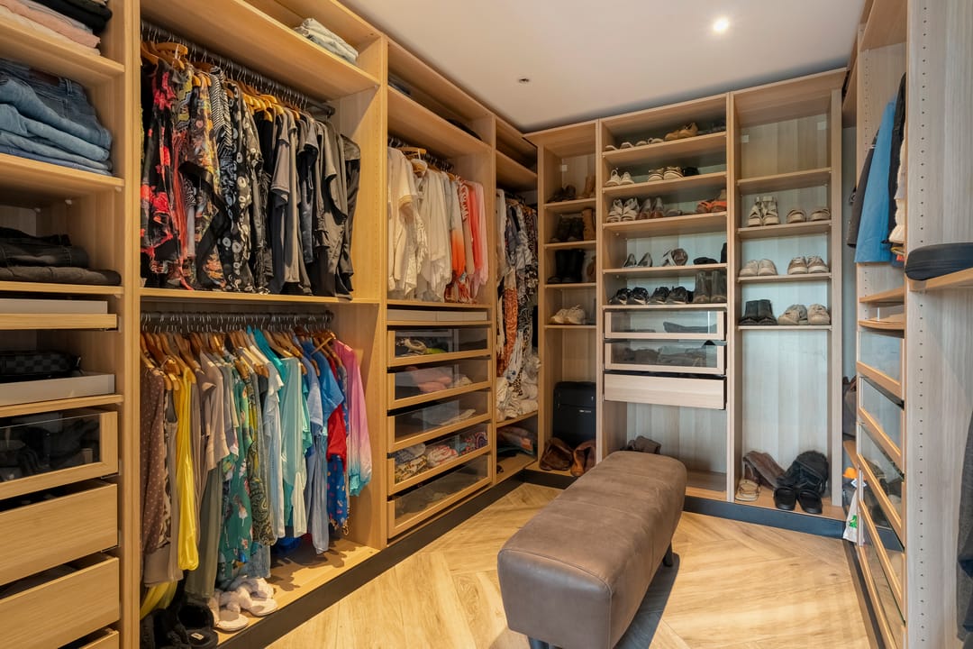 In het achterhuis bereikt u vanuit de centrale entree de praktische bijkeuken met vaste kastenwand en opstelplaats voor wasmachine en droger. Aansluitend bevindt zich de royale masterbedroom met airconditioning, inloopkast en een luxe badkamer en-suite voorzien van vrijstaand ligbad, dubbele wastafel, inloopdouche en toilet.