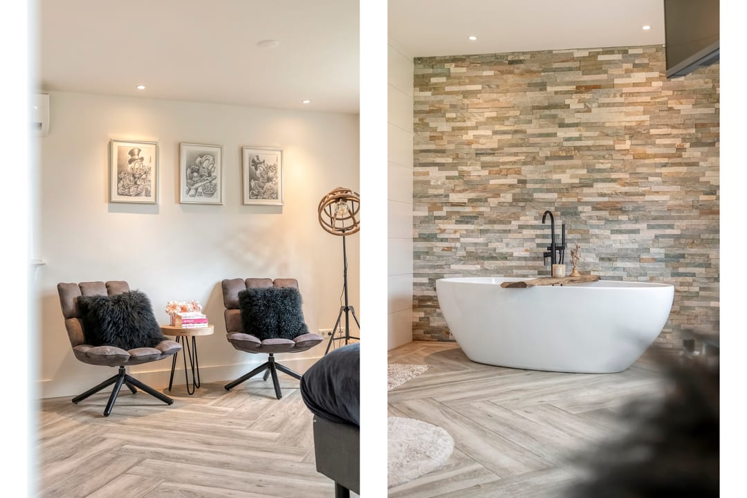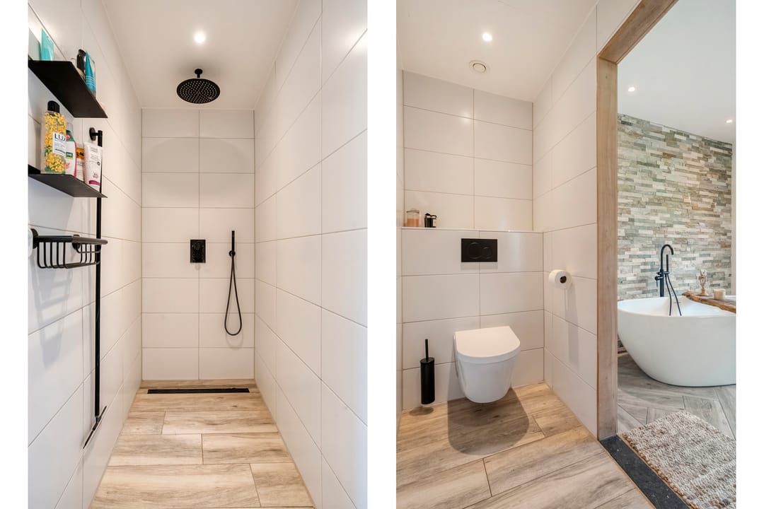 Vanaf de buitenzijde zijn nog 2 appartementen/gastenkamers bereikbaar, elk met eigen badkamer met wastafelmeubel, douche en toilet. Ideaal voor gasten, mantelzorg of B&B.