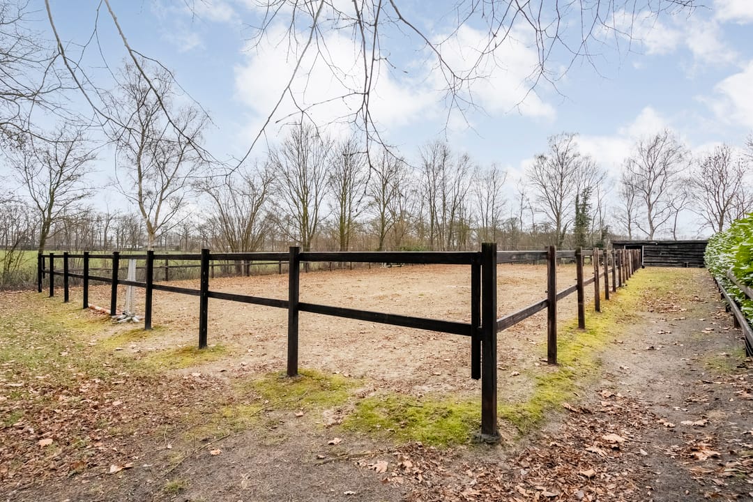 Het royale perceel van circa 1,1 hectare is vrijwel geheel omgeven door degelijk hardhouten hekwerk en ingericht voor optimaal buitenleven en paardenliefhebbers: