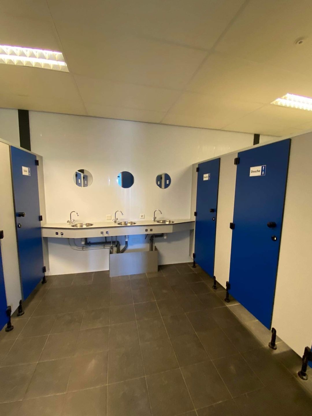 Hier bevindt zich een ruimte met 4 toiletten, 4 douches en 3 wasgelegenheden. Verder zijn er op deze verdieping 4 kantoorunits met eigen keukenblok,totaal 100m2.