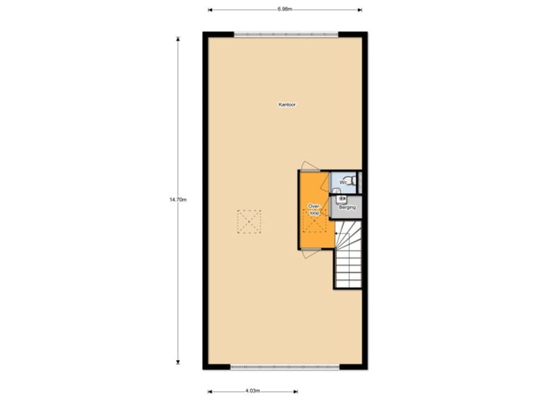 Het is mogelijk om de begane gronde in te richten als bedrijfsruimte en de 1ste verdieping als gebruik voor kantoor of opslagruimte. Over de gehele verdieping is een laminaat vloer gelegd, daarom is de ruimte gelijk mooi in te richten. De grote raampartijen geven de ruimtes een lichte uitstraling.