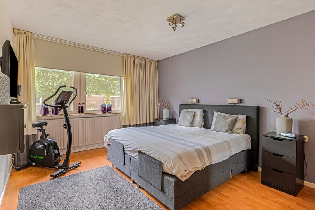Ruime slaapkamer 1 met laminaatvloer.