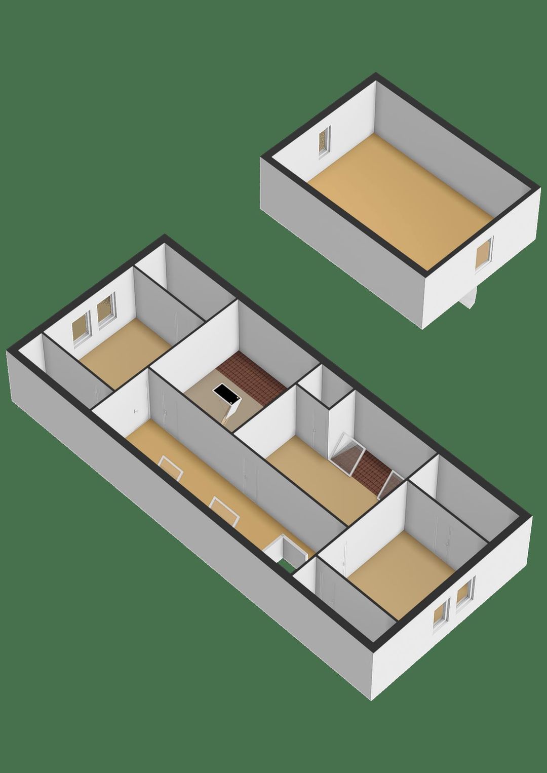 Twee kantoorruimtes aan de voorzijde.