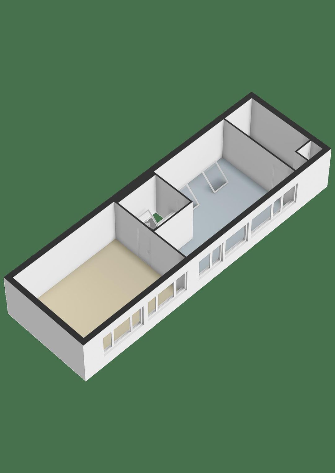 Kantoorruimte met laminaatvloer en lichtkoepel.