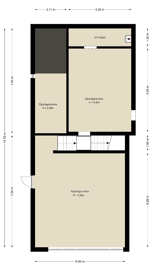 De bedrijfshal omvat circa 150 m² VVO op begane grond. De inpandige hoogte van de hal bedraagt circa 5 m.