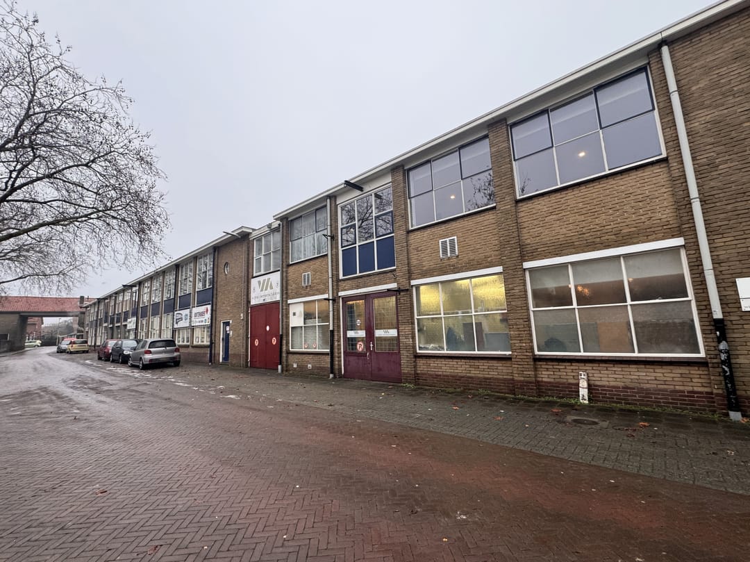 Multifunctionele bedrijfsruimte/opslagruimte van totaal ca. 100 m² op een kleinschalig bedrijventerrein nabij het centrum en bij het NS station Bussum Zuid.