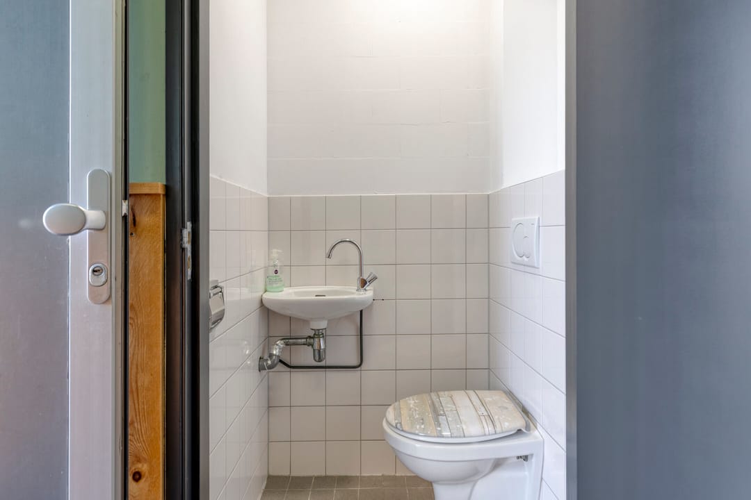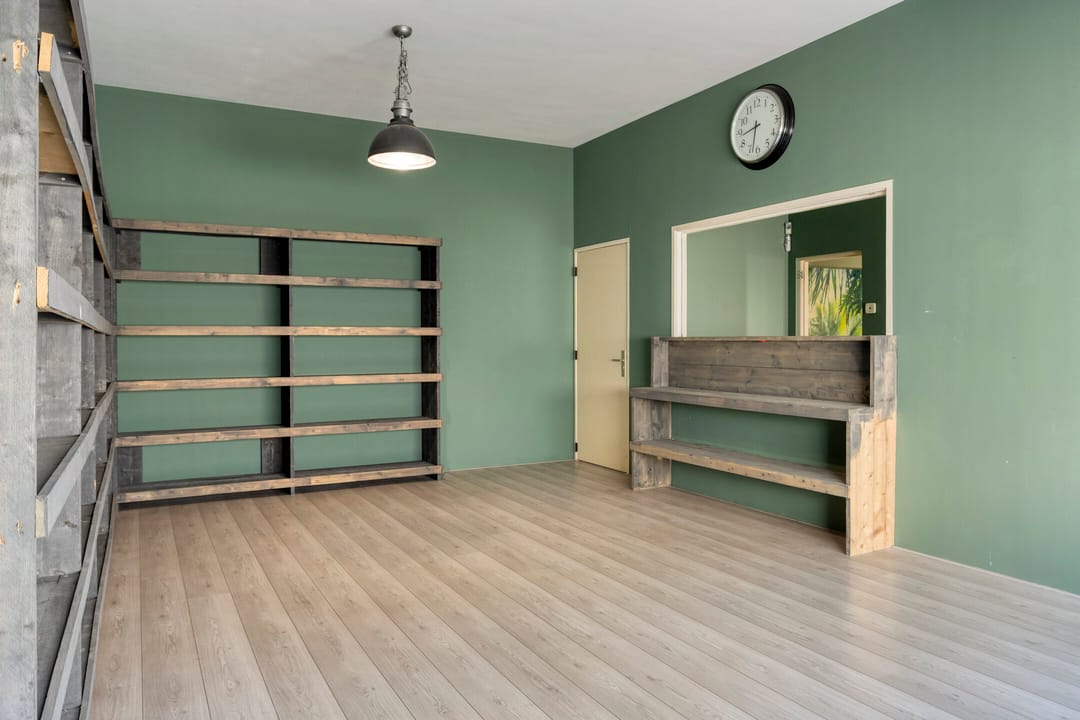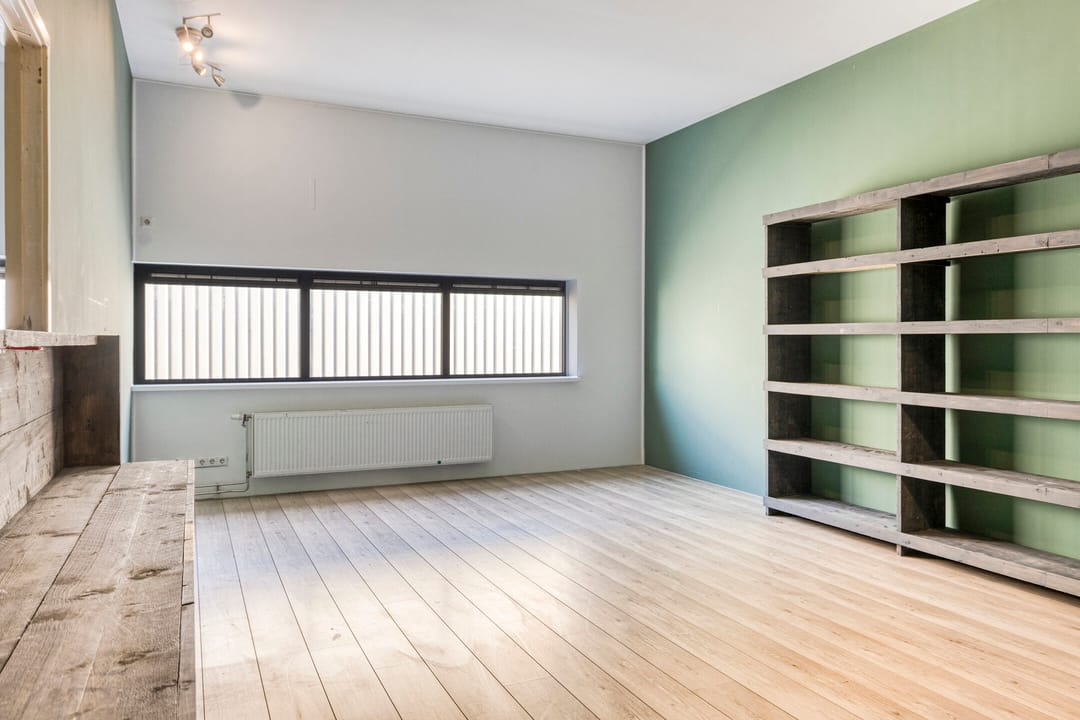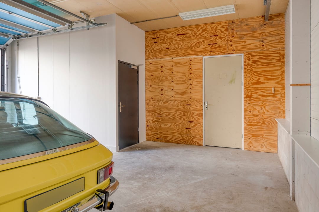 - Overheaddeuren, betonvloer, toilet, inbouwarmaturen en te openen ramen