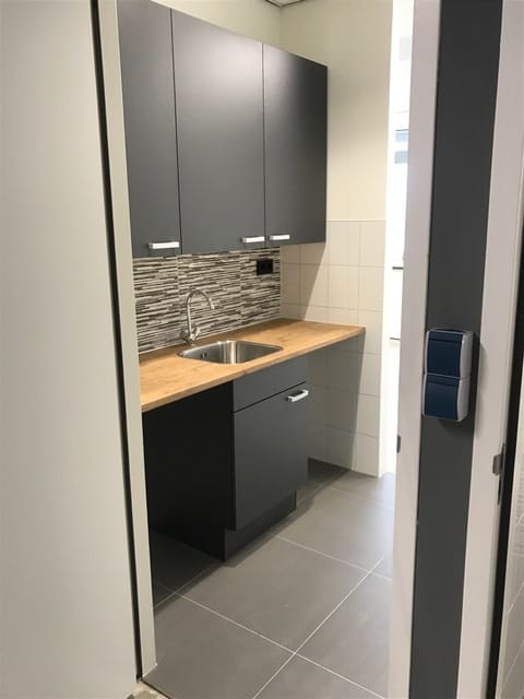 Luxe pantry met onder- en bovenkastjes en aansluitingen voor koelkast en vaatwasser