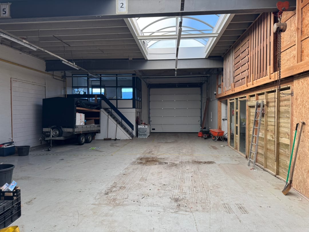 - Overheaddeuren, betonvloer, heater en pantry