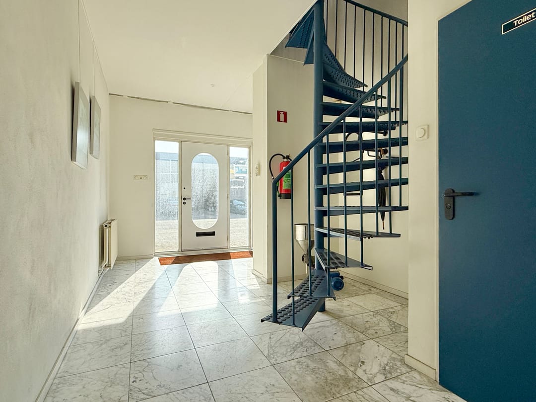 Entree/ hal, meterkast, trap, toiletruimte, vanuit de hal een deur naar de werk-/ kantoorruimtes beneden. Zowel via de kantoren als de entree/hal toegang tot de bedrijfshal, via een loopdeur is er toegang tot de tweede bedrijfsruimte.