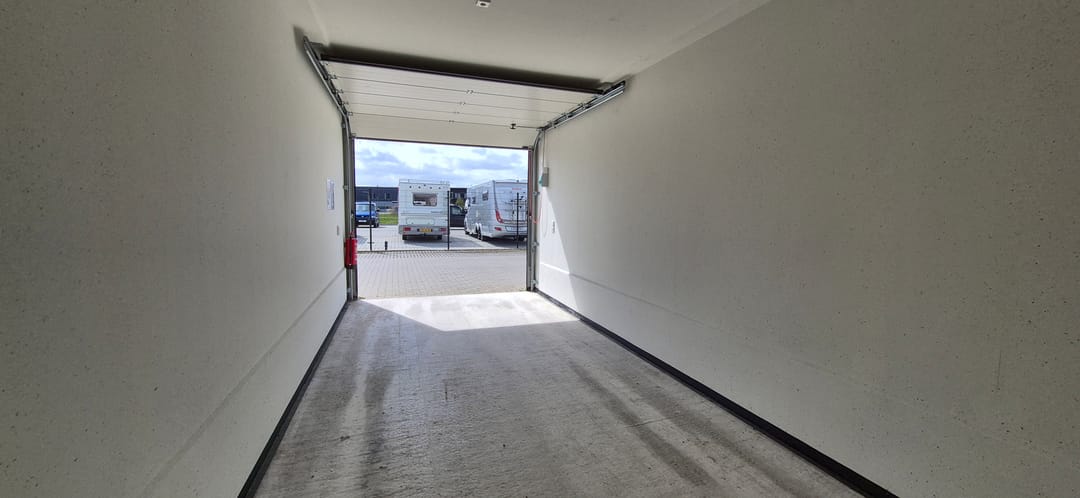 De box is voorzien van een sectionaaldeur, elektrameter, stopcontacten en verlichting.