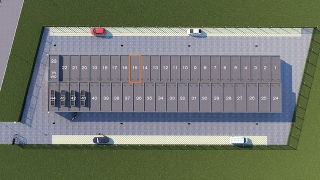 Het garagepark waarvan de box onderdeel uitmaakt is volledig omheind en voorzien van een elektrisch bedienbare poort met toegangssysteem. Verder is er 24/7 camerabewaking en een gemeenschappelijk toilet aanwezig. Op eigen terrein bevinden zich ruim voldoende parkeerplaatsen. Elke box heeft een eigen postbus.