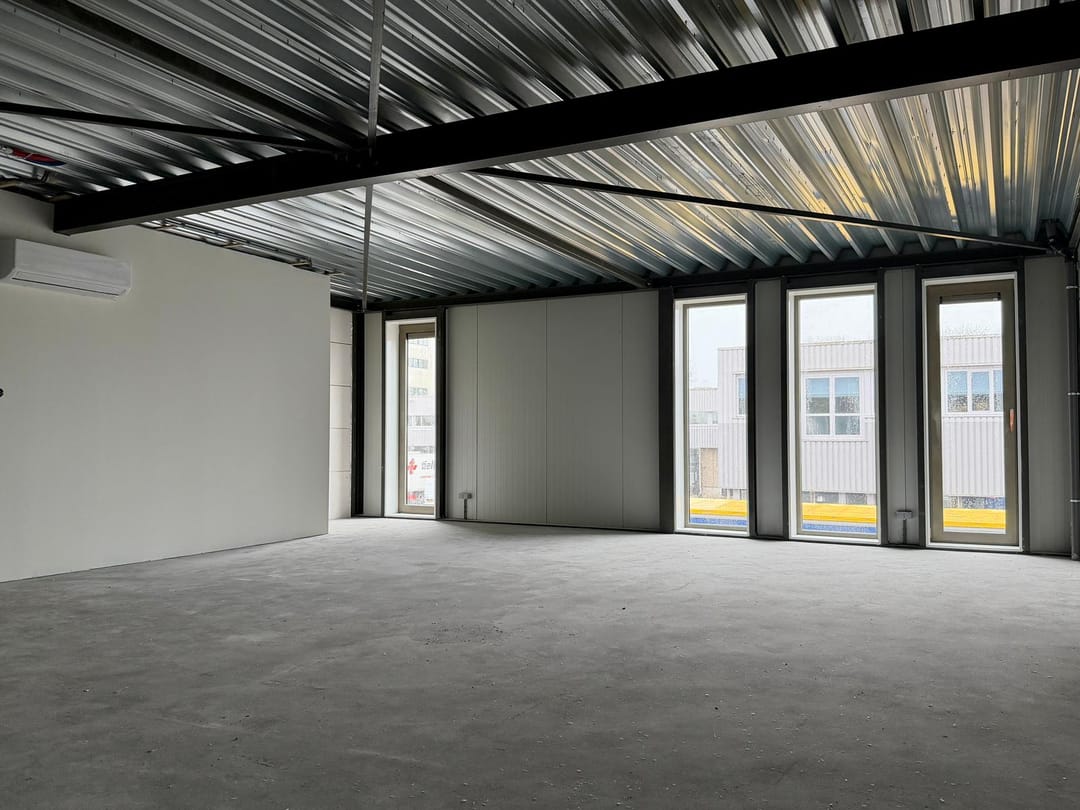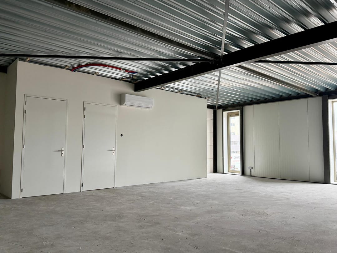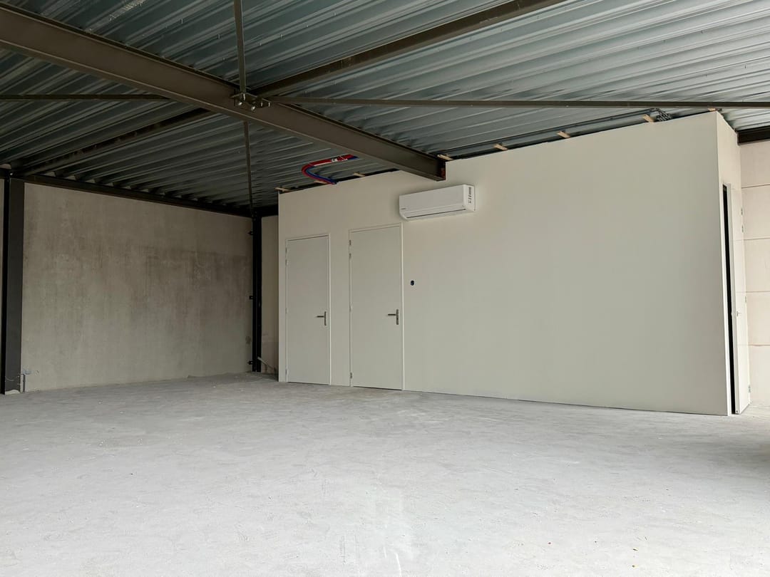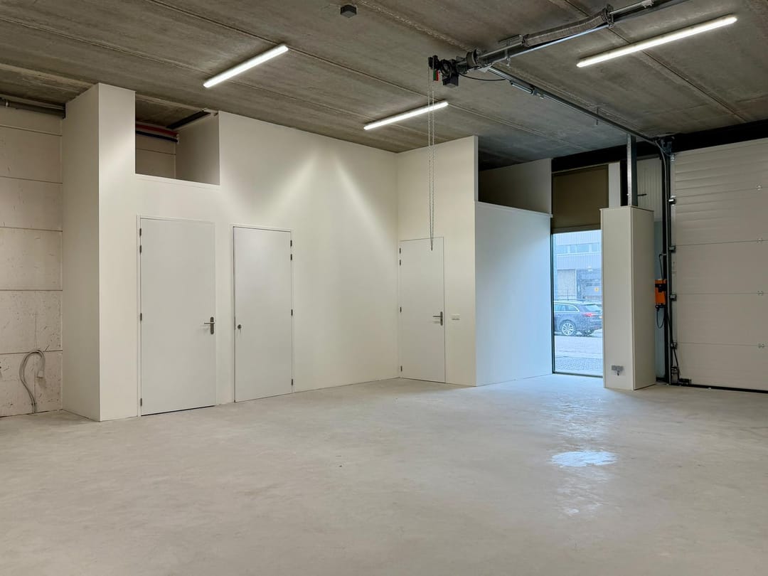 - Overheaddeuren, betonvloer, toilet, pantry, airconditioning, inbouwarmaturen en te openen ramen