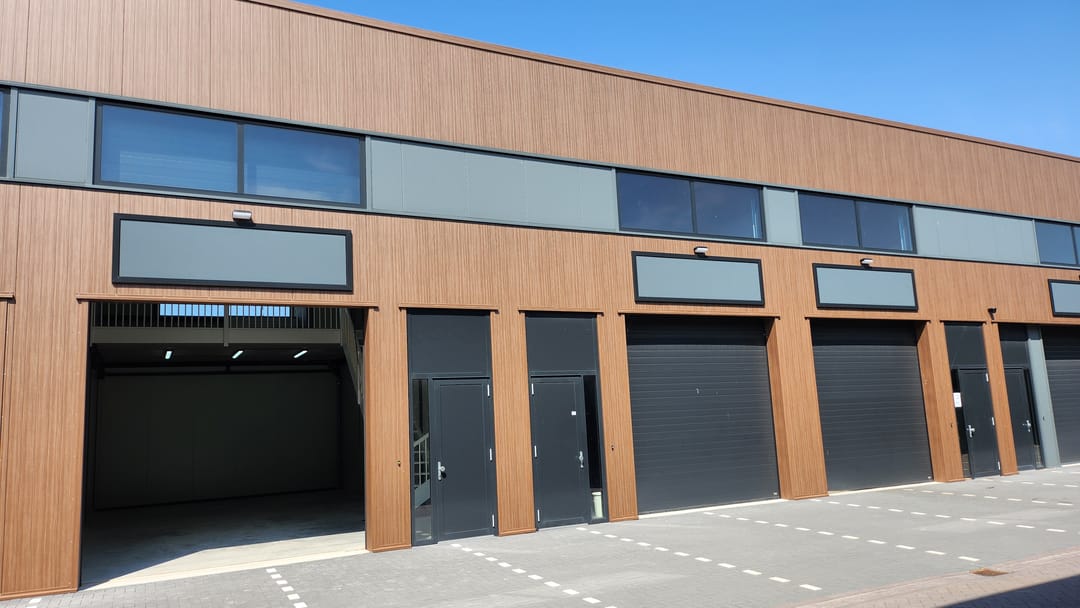 Te huur, een wat grotere, zeer representatieve en nieuw opgeleverde representatieve (midden-) bedrijfsunit (appartementsrecht) met veel raampartijen aan voor- en achtergevel van totaal ca. 104,2 m² b.v.o. verdeeld over twee bouwlagen. De unit wordt compleet opgeleverd en is direct start klaar. De unit bestaat uit een werkplaats met elektrisch bedienbare industriedeur en kantoor- of verblijfsruimte met pantry en toilet op de verdieping, gelegen aan de Schoffel 69 B3 te De Goorn.