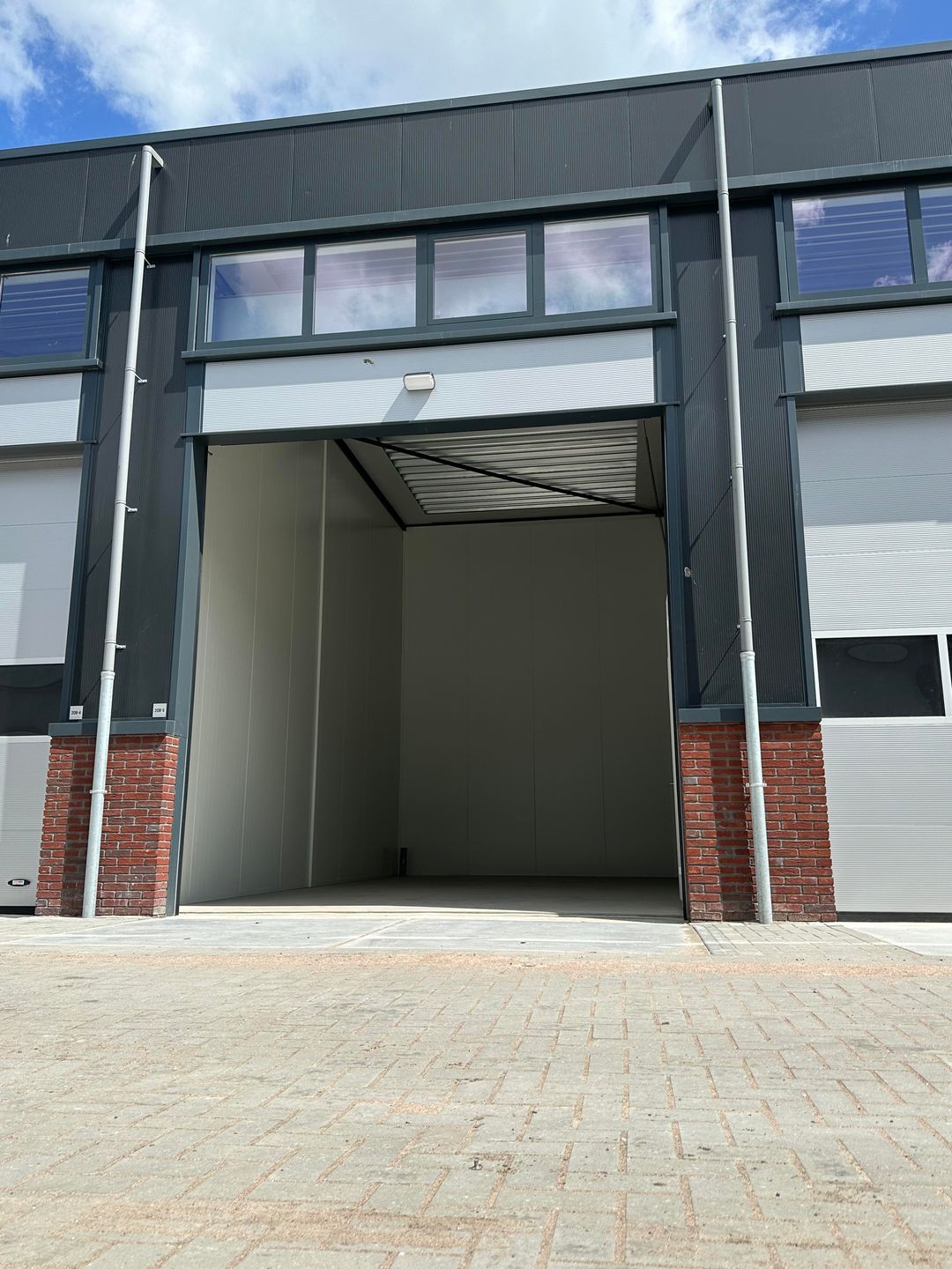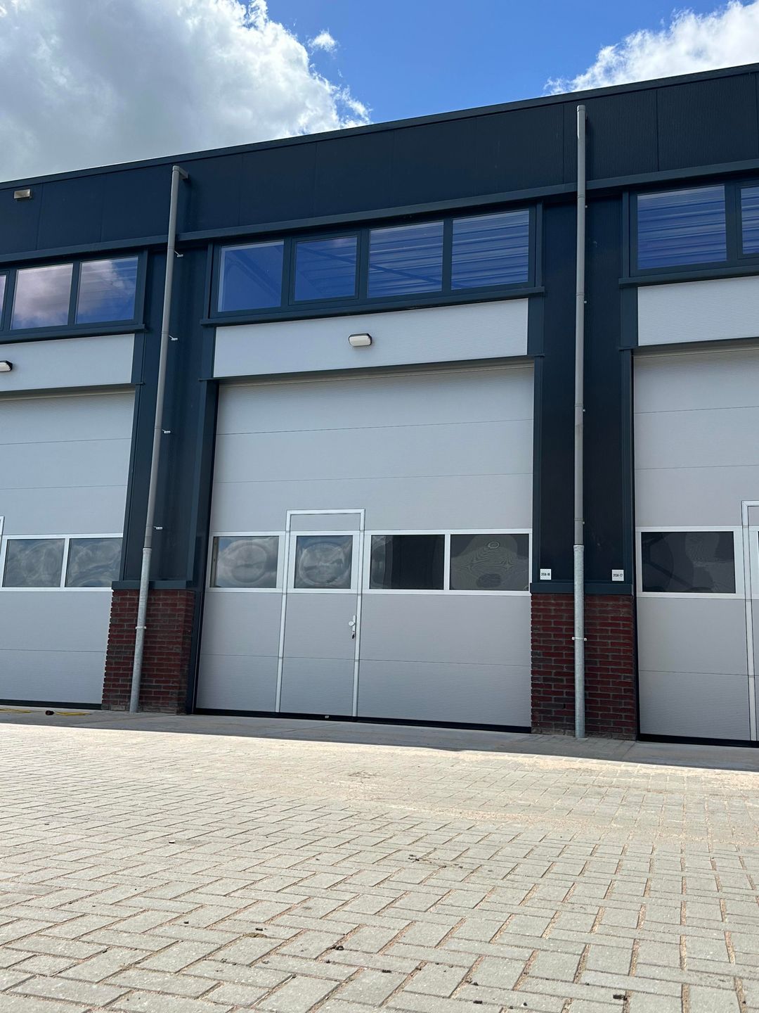• Elektrisch bedienbare sectional-deur (4.000 x 4.000 mm) v.v. een loopdeur opgenomen in de overheaddeur.