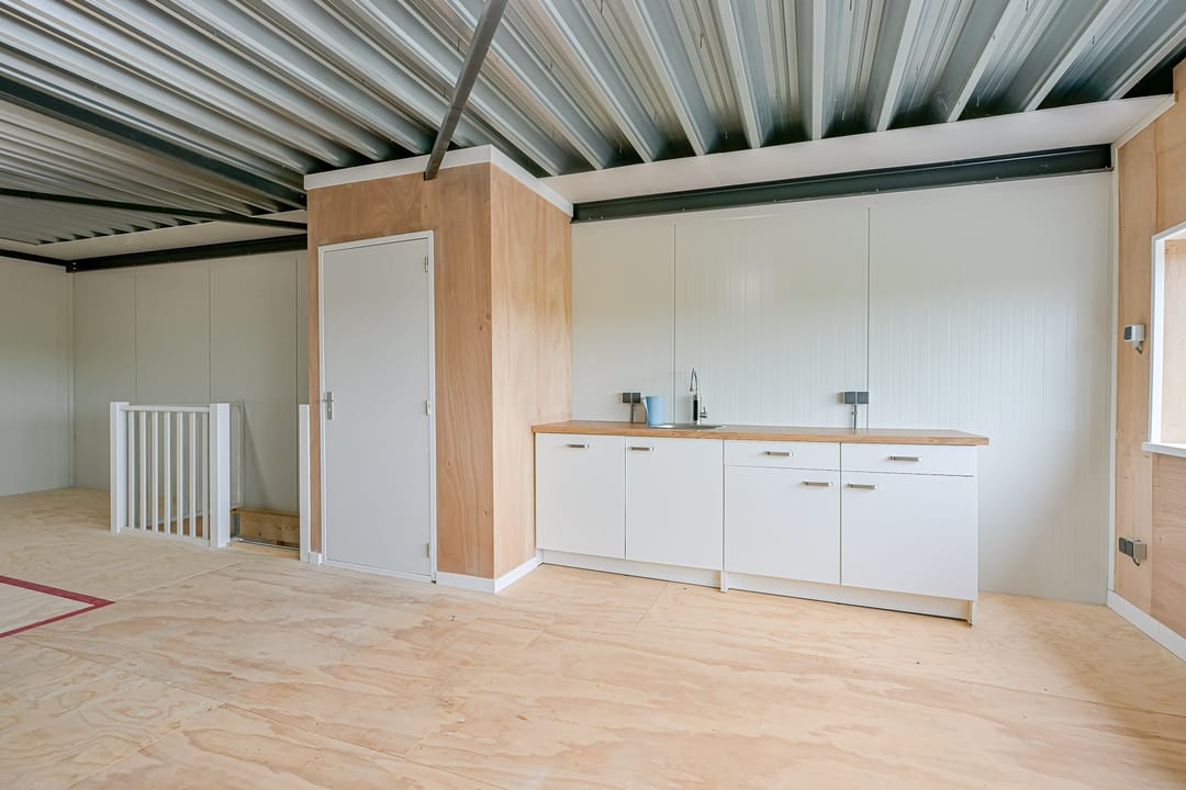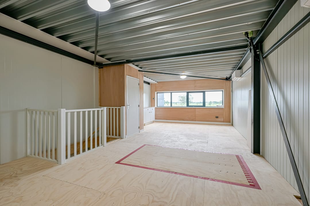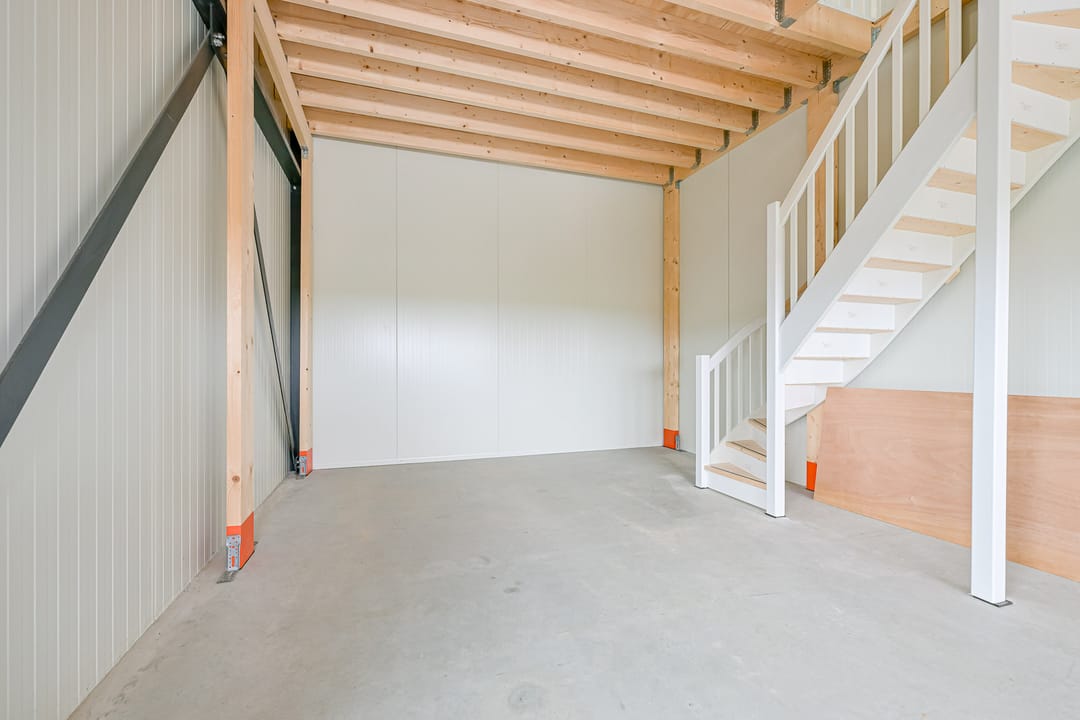 • onderheide, geïsoleerde en afgevlinderde betonvloer op begane grond (1.000 kg/m²) en verdiepingsvloer van hout met palletbreed doorvoerluik