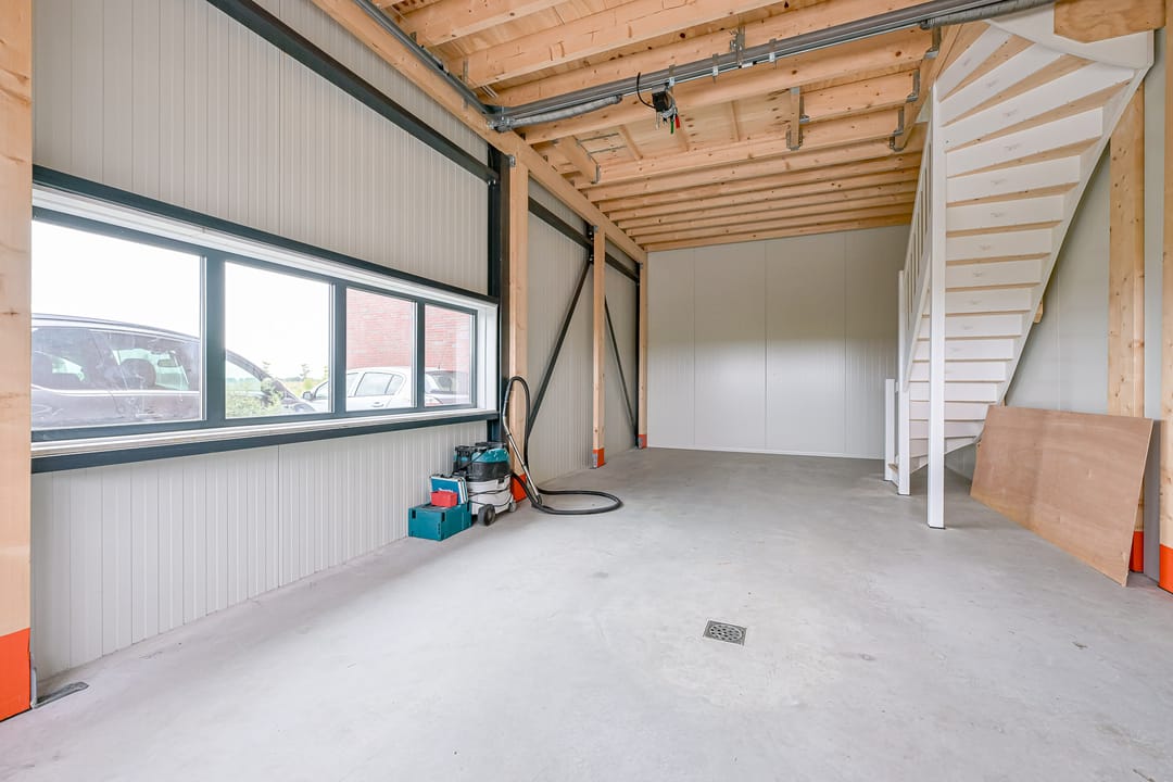 Splinternieuwe hoek-gelegen bedrijfsunit, hoogwaardig afgewerkt met onder meer een keuken met warm water, vaatwasser en ruim kastruimte. Een betegeld toilet, goede verdiepingsvloer met palletbreed doorvoerluik, elektrische overhead deur, krachtstroom, airco en zonnepanelen.