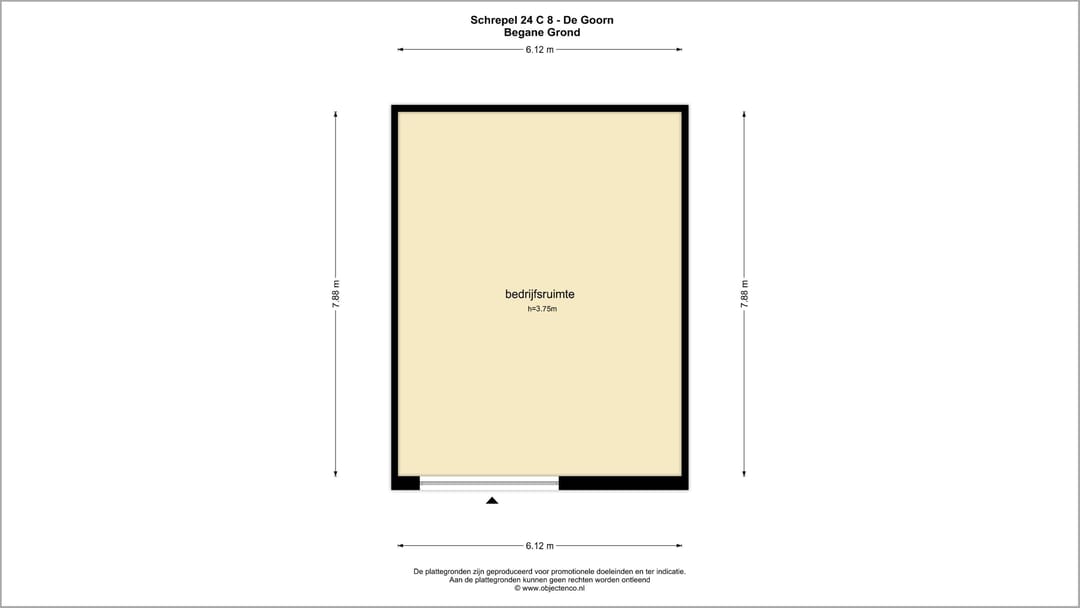 Bedrijfsruimte bg.: 50 m² b.v.o. (ca. 48 v.v.o.).