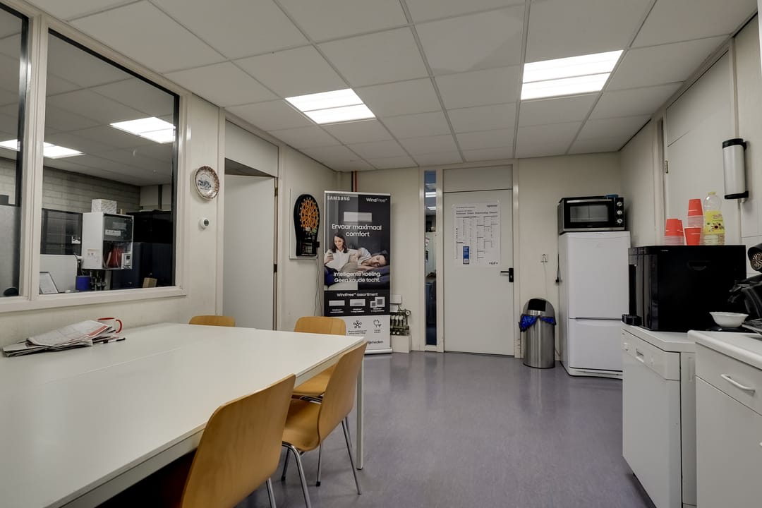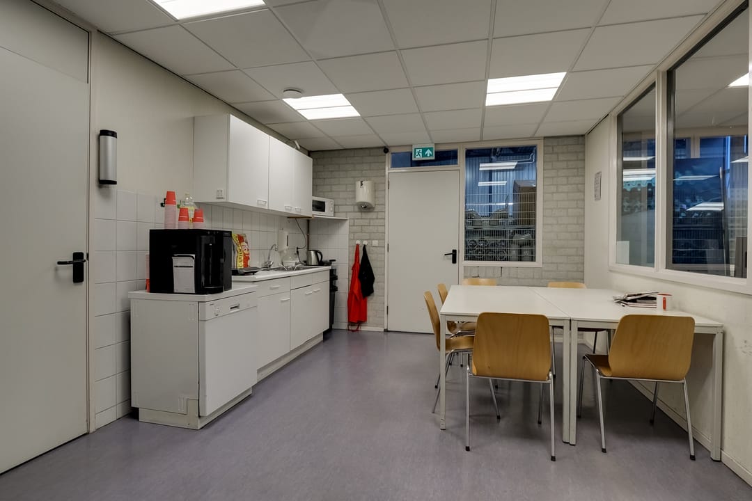 - kantine met keukenfaciliteiten zoals koel- vrieskast, vaatwasser en kooktoestel