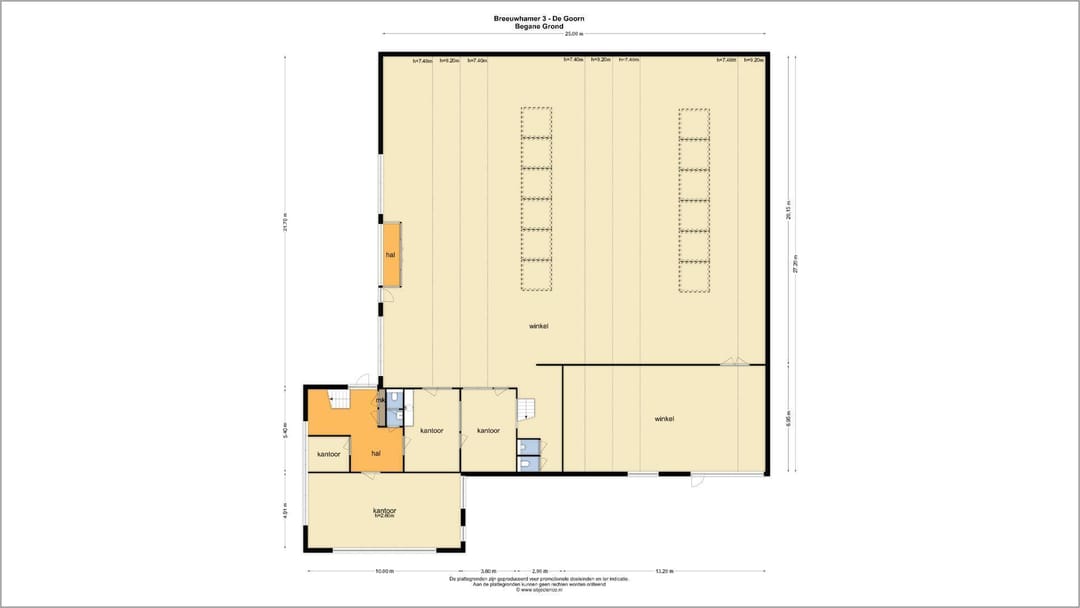 Totale oppervlakte Breeuwhamer 1 en 3 tezamen: 3.034 m² (vvo).