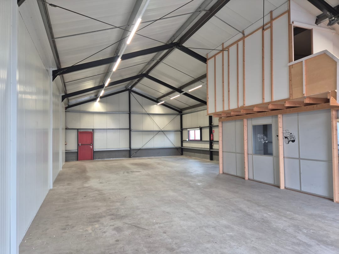 Te huur, een courante, representatieve (hoek-) bedrijfsruimte bestaande uit een royale werkplaats met kantoor van in totaal ca. 225 m² en daarnaast een eigen stuk verhard terrein van ca. 235 m² , gelegen aan de Schrepel 25 te De Goorn.