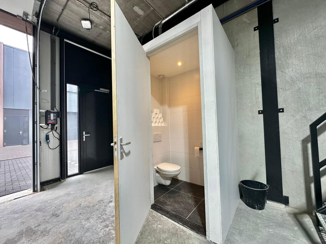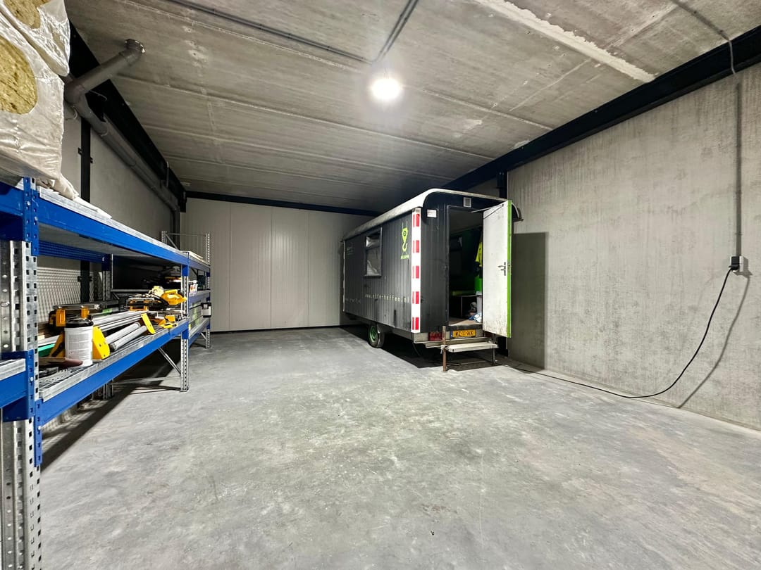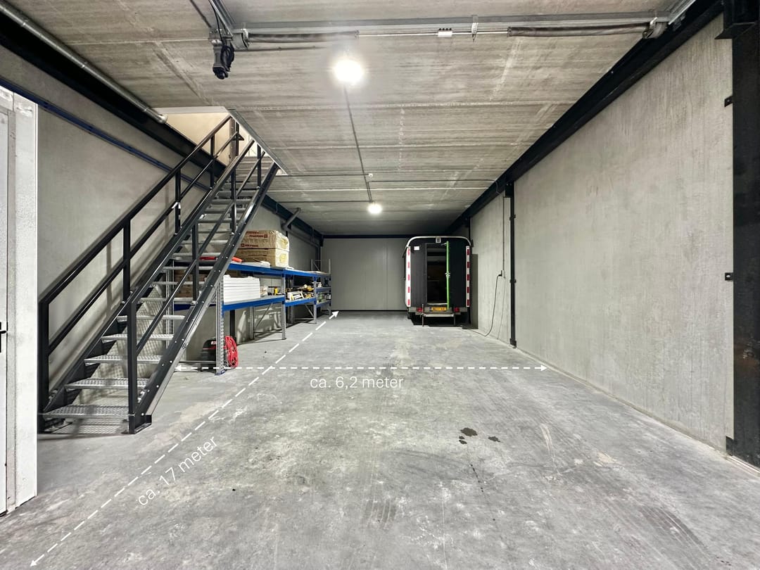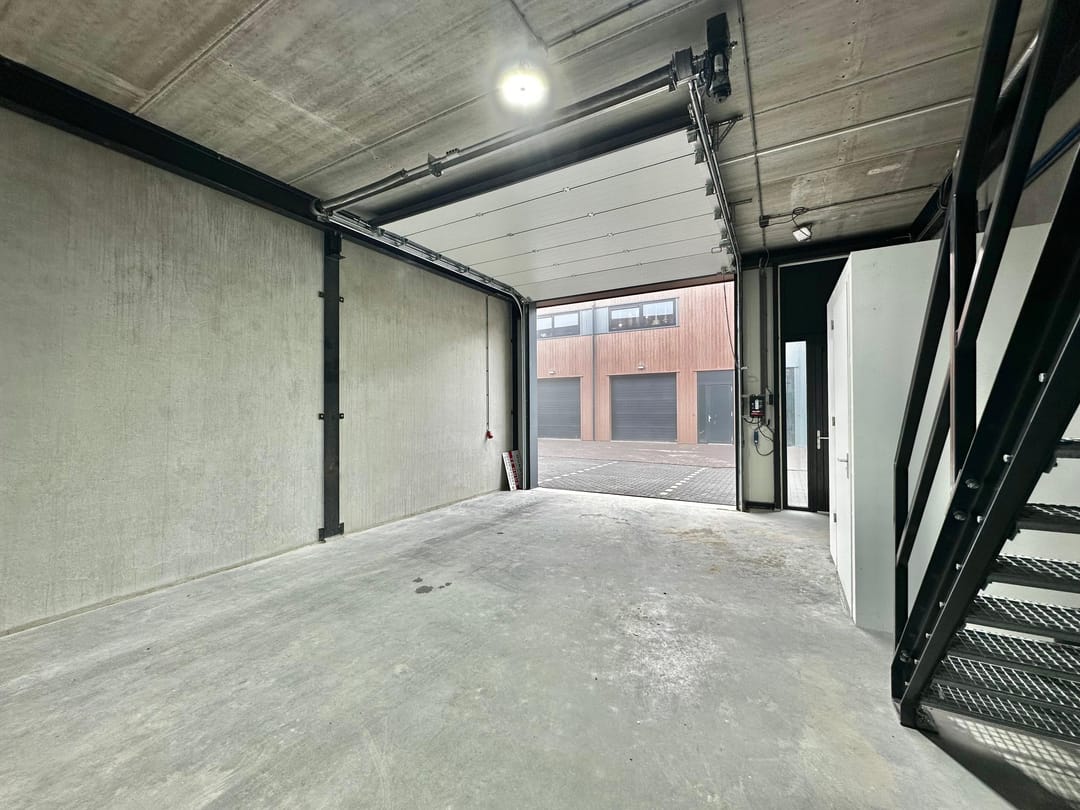 - Overheaddeuren, krachtstroom, betonvloer, toilet, pantry, airconditioning en te openen ramen